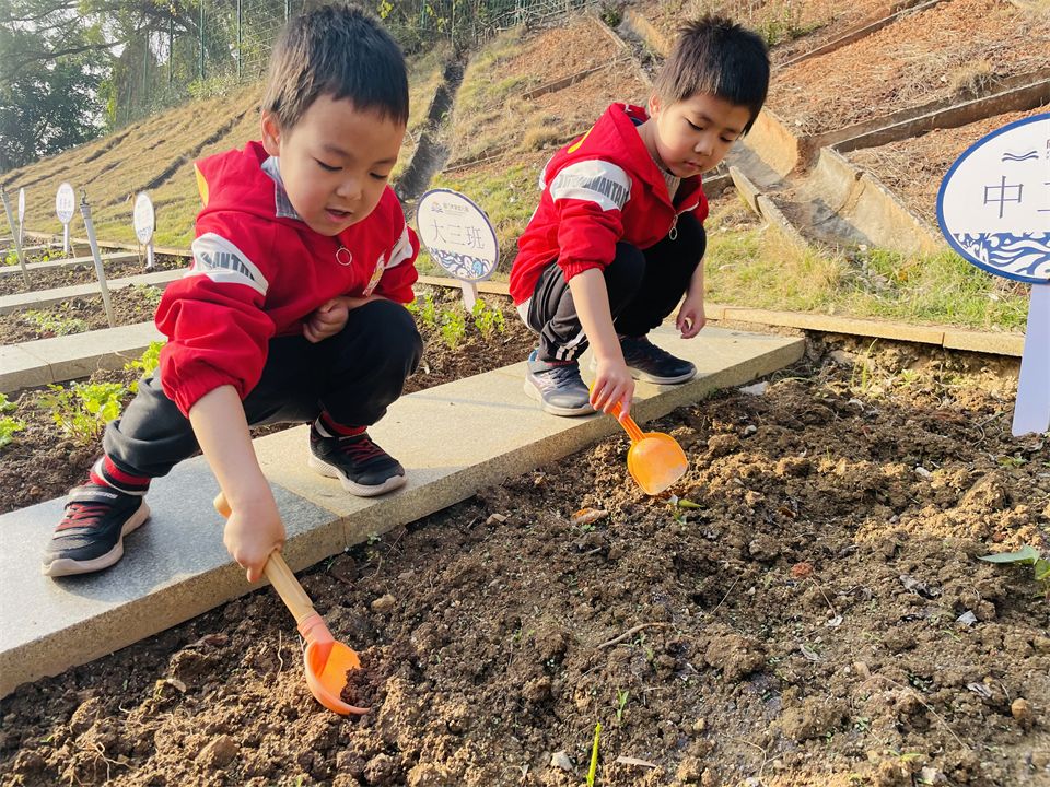 一年之计在于春,在这耕种的好时节,孩子们三三两两相约菜园,一起感受春天的气息。瞧!他们正用自己稚嫩的双手,种下“春天的嫩苗”,期待成长开花。