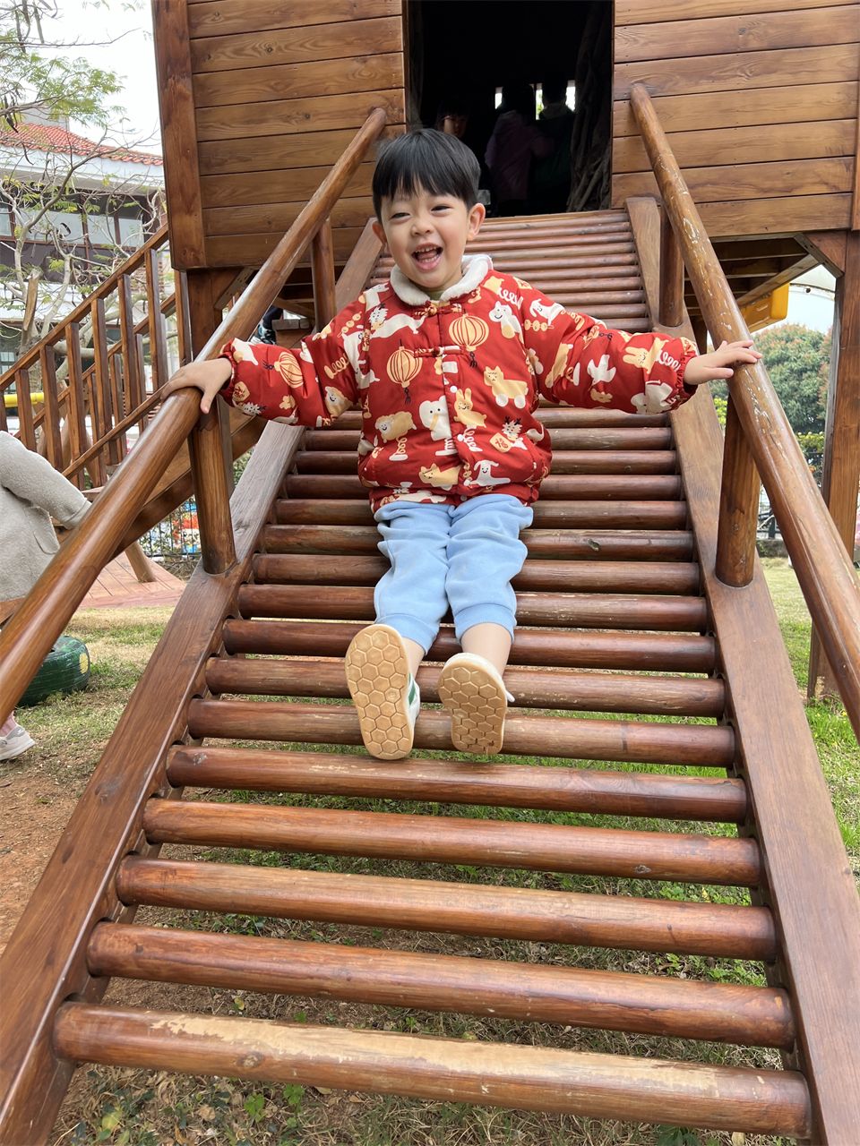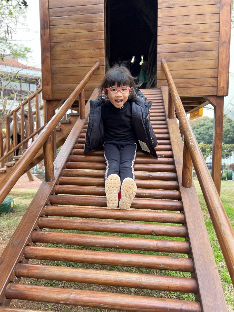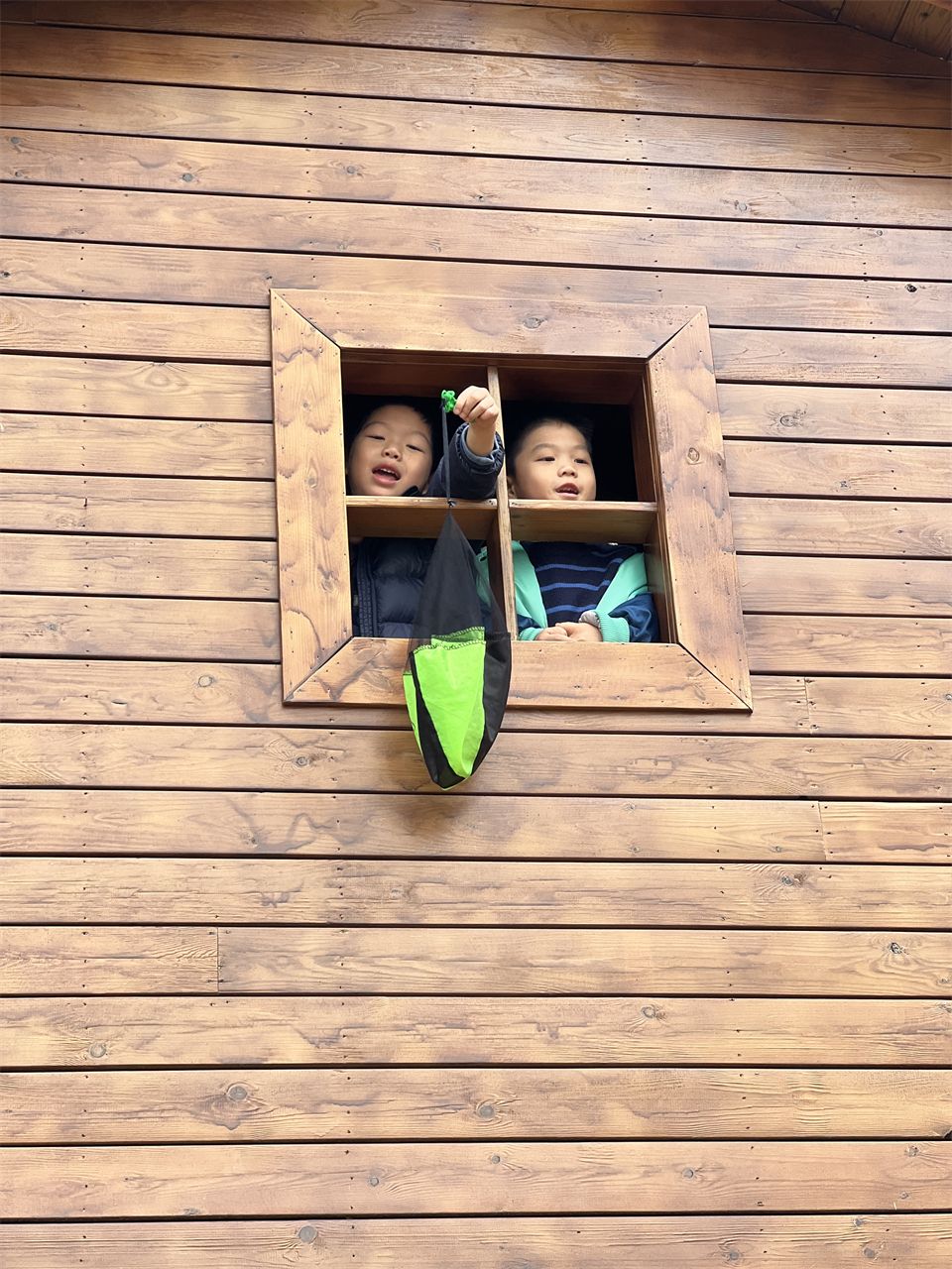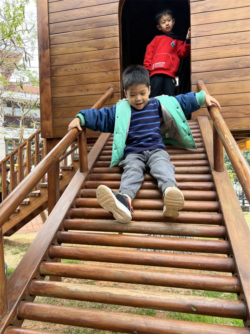 绿油油的山坡总是深受孩子们的喜爱,“我喜欢在小山坡玩降落伞的游戏。”“我们来比一比谁的降落伞飞得高!”;有的宝贝从小树屋的滑滑梯上“咻”的一下,滑了下来,开心极了!还有的宝贝正在索桥上通行,小心谨慎地扶着把手,顺利闯关。还有的宝贝甚至就是那么简单地迎风奔跑而下,满脸的灿烂笑容,他们一起找寻着山坡的秘密……