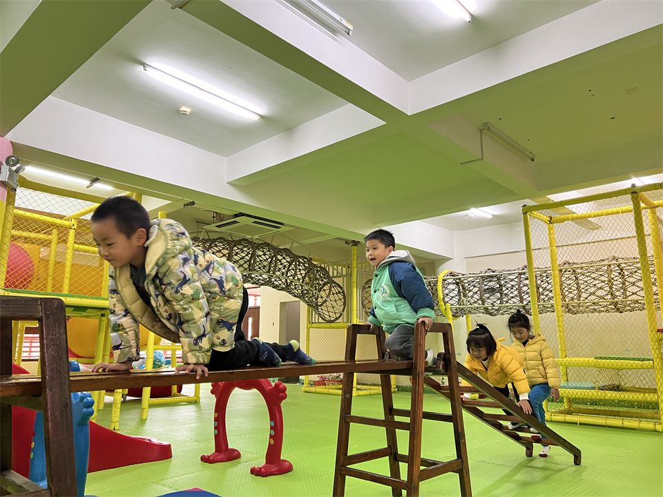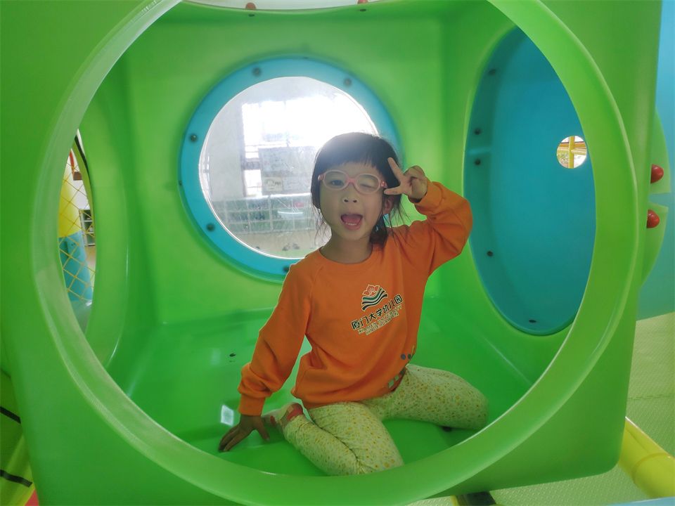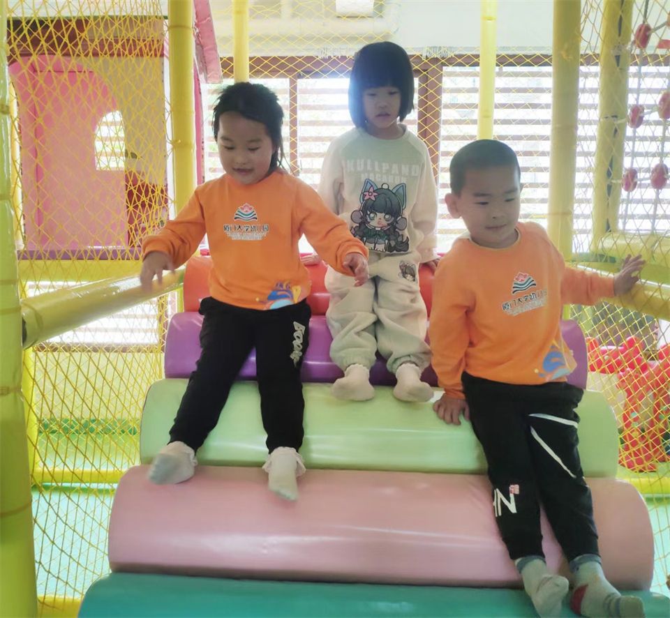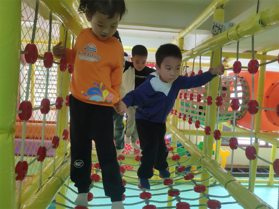 淘气堡里汇集了走、跑、跳、钻、爬、攀登等技能的游戏活动,孩子们根据游戏规则,爬过荡荡桥、走过障碍物、钻过隧道……最后到达终点,真是玩得太开心了!