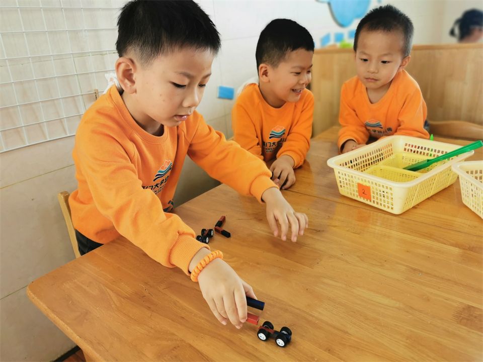 这个月,小朋友还和小伙伴相约在班级的不同区域玩耍。有的在数学区玩按颜色规律排序,有的在科学区探索有趣的磁铁,有的在操作区拼积木,有的在美工区画画。每个区域都充满了欢声笑语,展现了他们的好奇心和创造力。小朋友们尽情地探索、学习,度过了充实而愉快的美好时光。