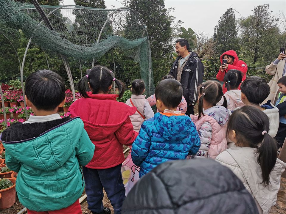 三月初春雨绵绵,小朋友撑着小花伞,一起徒步去厦门大学花圃。一路上他们欢声笑语,一路欣赏着春雨洗礼后的花草,感受着大自然的美好。进入花圃,沁人心脾的花香已随风飘至,各色花儿竞相开放,五彩缤纷,美不胜收。小朋友们立马被五颜六色的花儿吸引,花圃的管理员舒师傅细致地给孩子们讲解各种花的名称和品性,小朋友们听得津津有味。