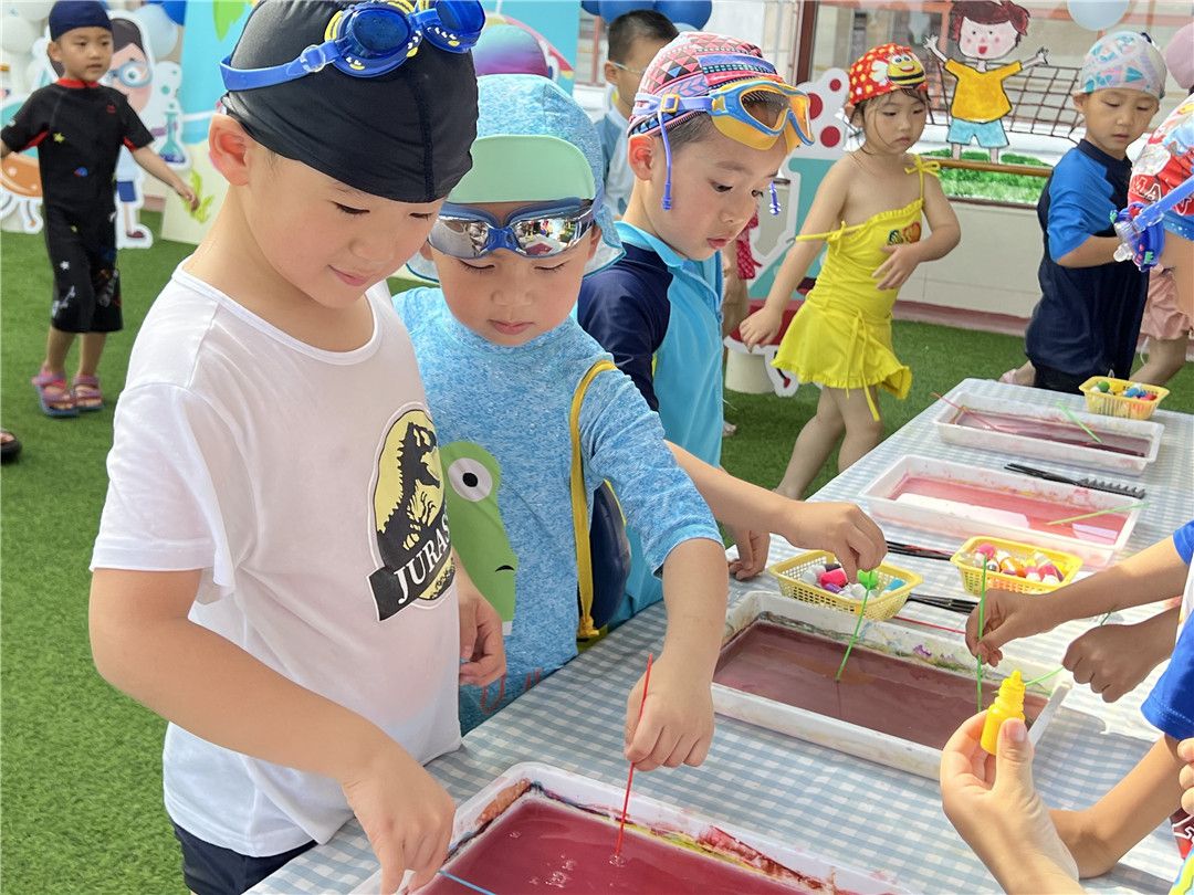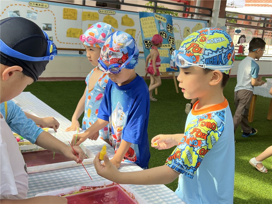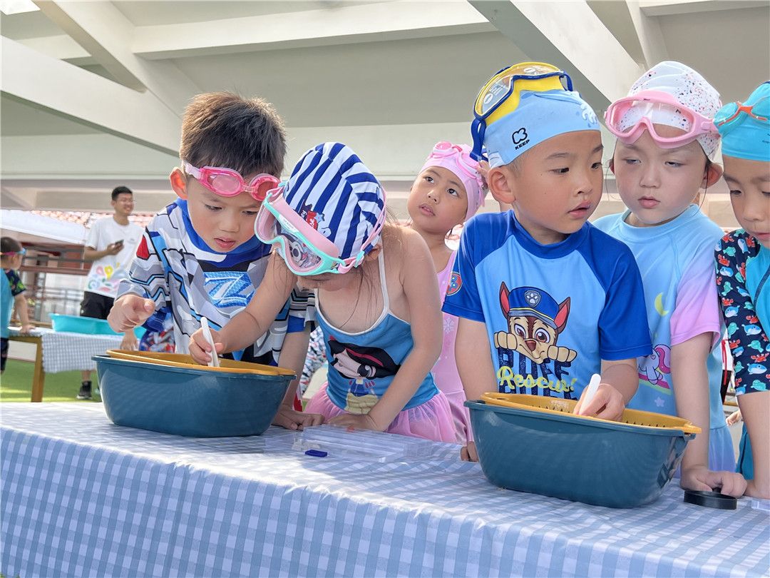 这一日,孩子们徜徉在水的世界里交流、欢笑在水的怀抱里撒欢、释放,尽情尽兴,畅怏畅玩,感受水的特性,体验美好童年!