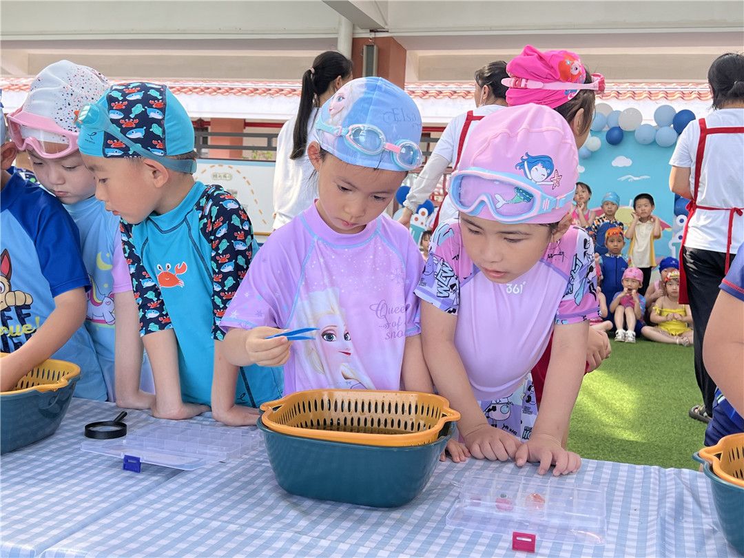 与水的游戏,畅享欢乐中。更有专注、认真、执着挑战的厦大幼萌娃!