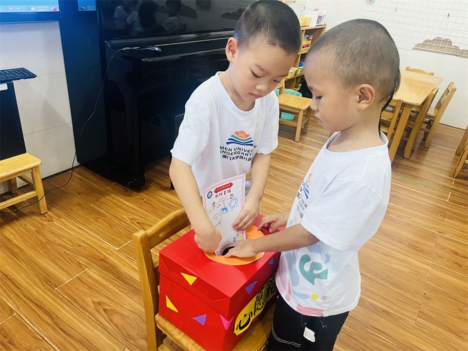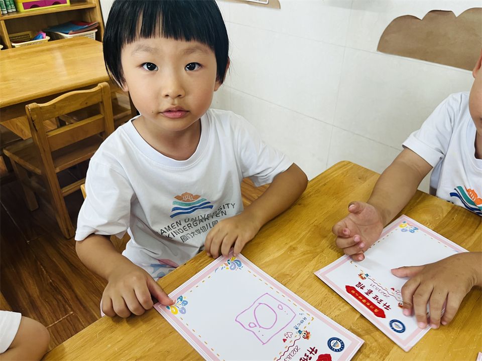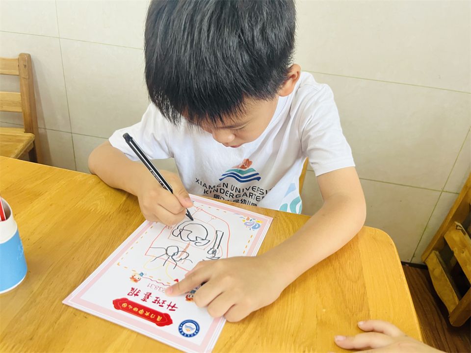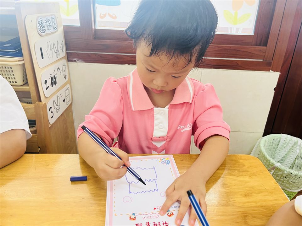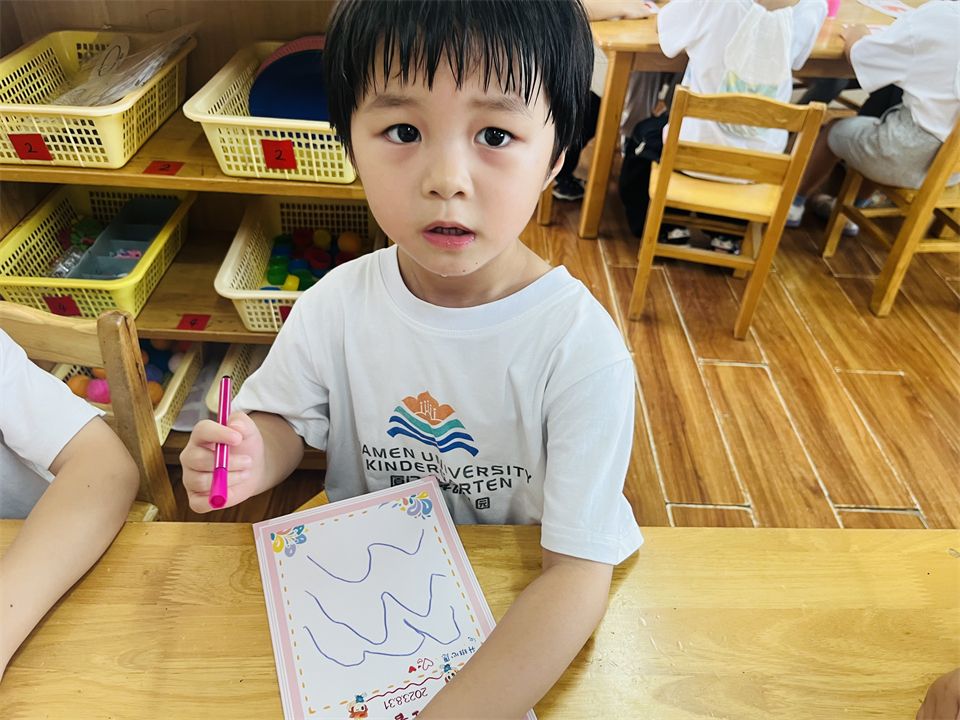 孩子们在纸上画上升班心愿,有的孩子希望自己在接下来的日子里都能和好朋友一起游戏;有的孩子希望自己能每天看到大海;还有的孩子希望自己能够吃到一个美味蛋糕......