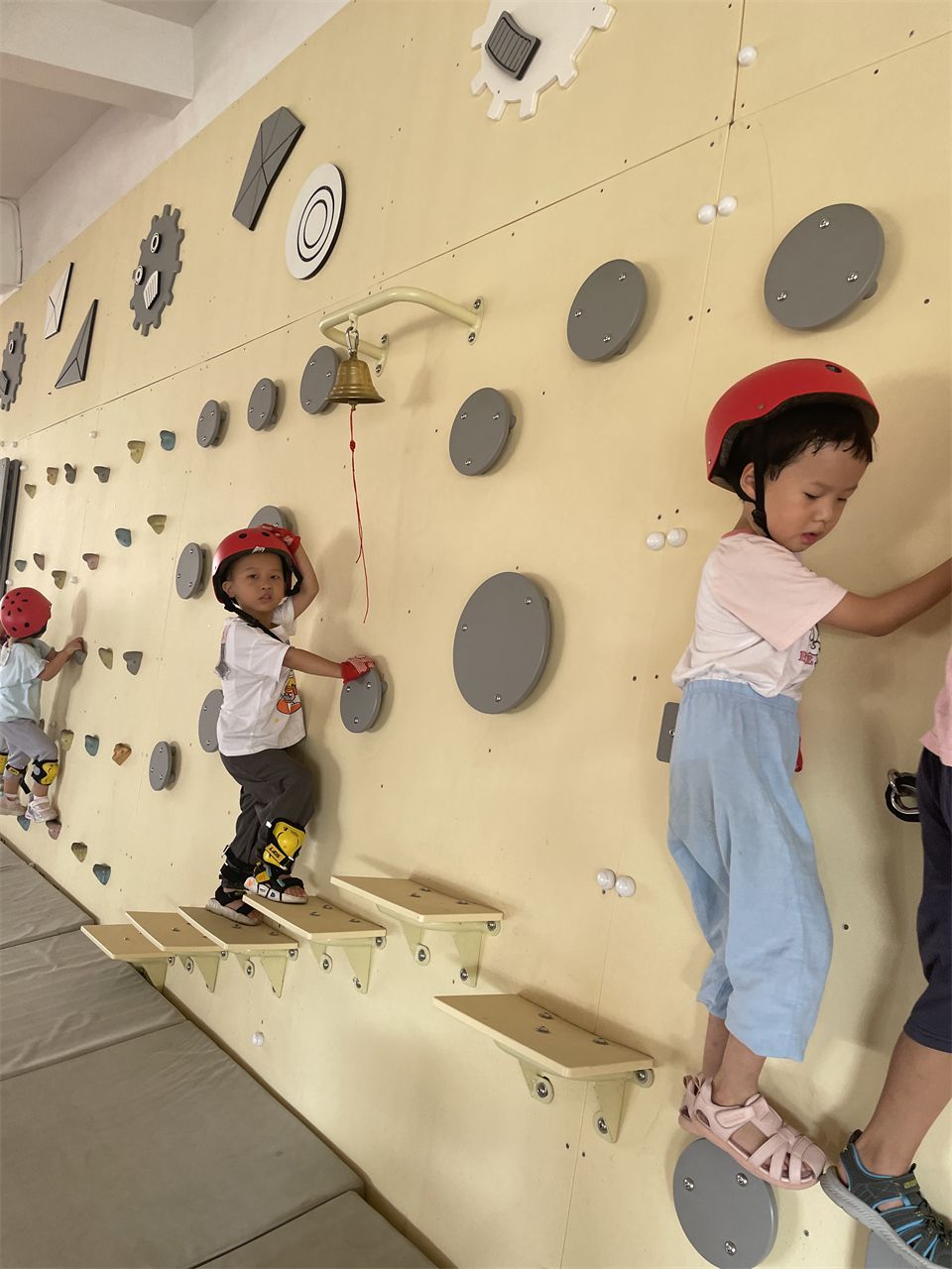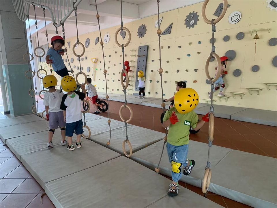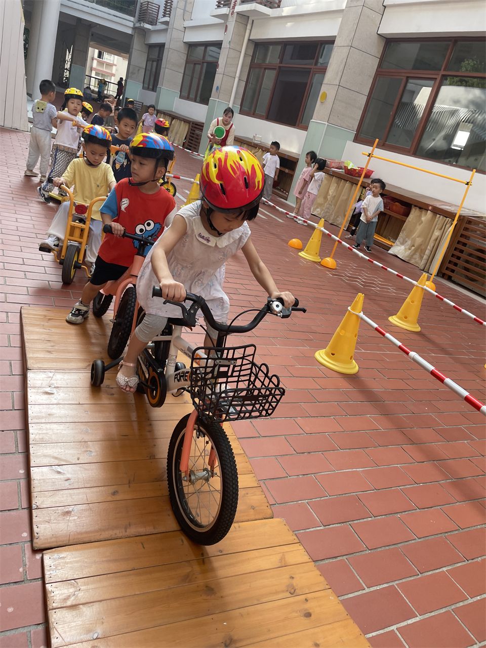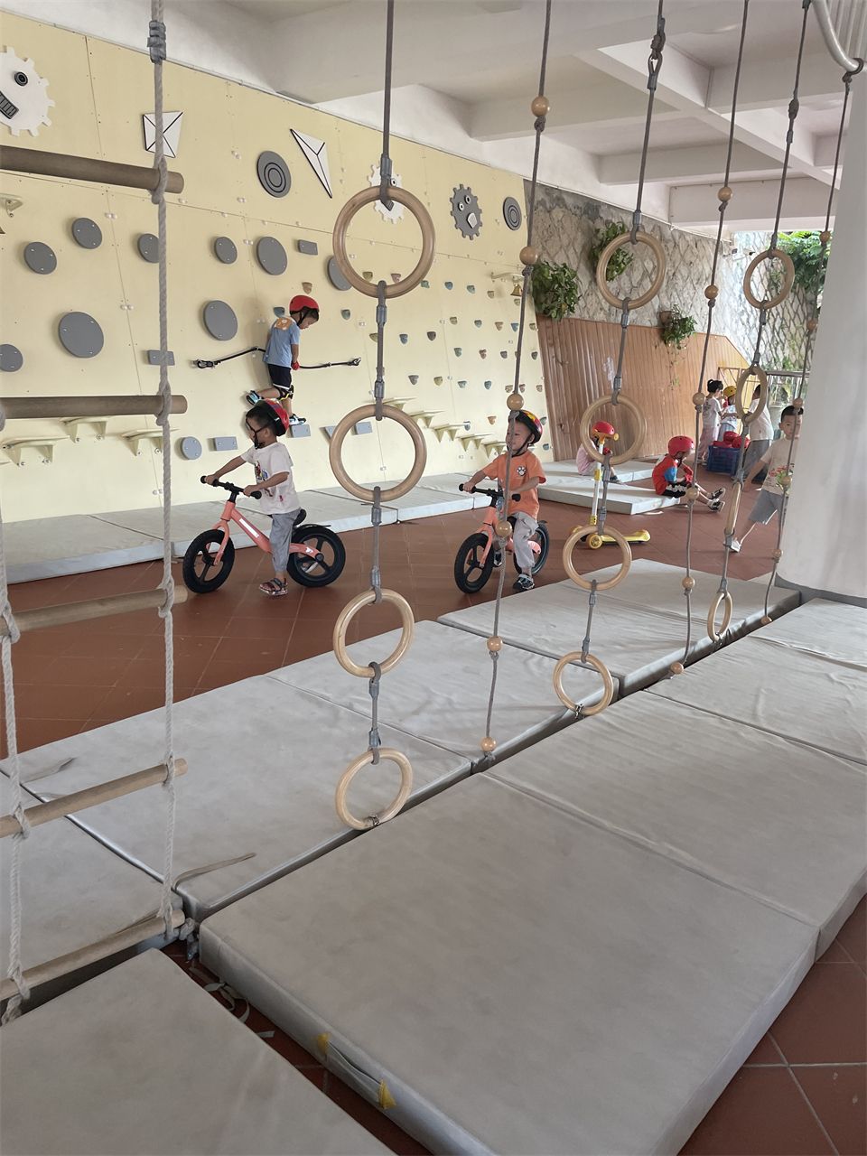 我们变成中班的哥哥姐姐,我们也变得更会玩了!看,我们在户外攀爬区里,自已穿戴上装备后就开始勇敢地攀爬。骑行区里,我们扮演小交警、小小外卖员、行人等,玩得不亦乐乎。当然了,淘气堡,书吧,角色室等也是我们的最爱。白城园区真的太玩了!