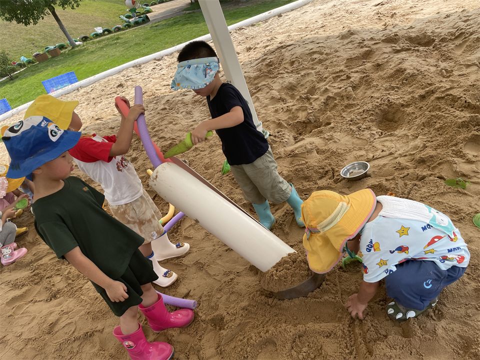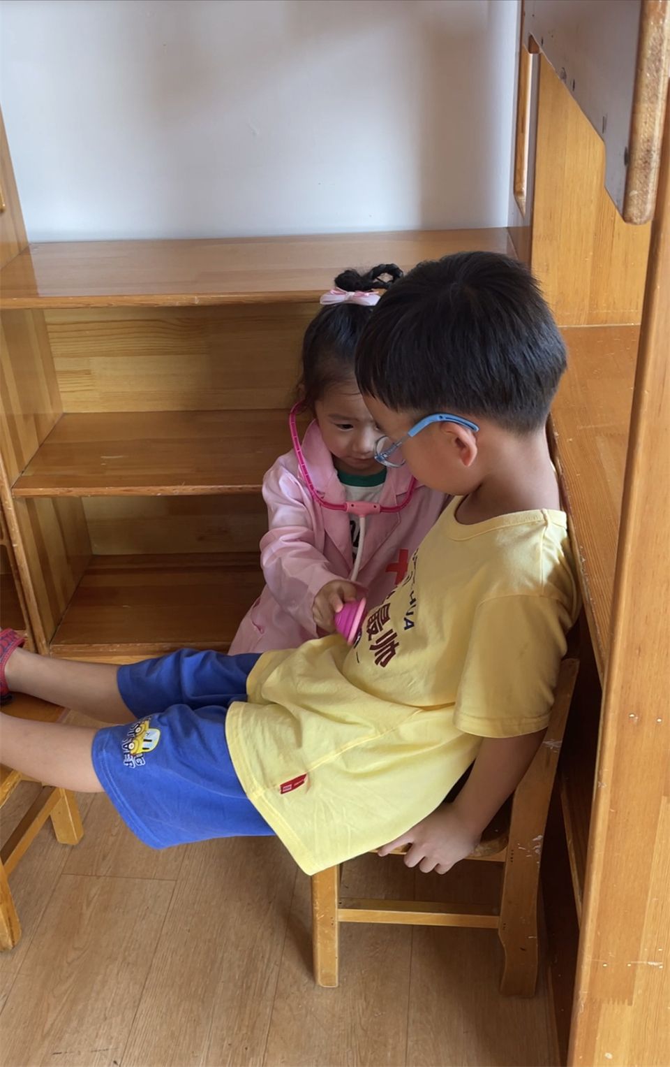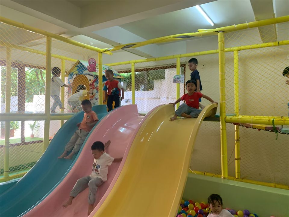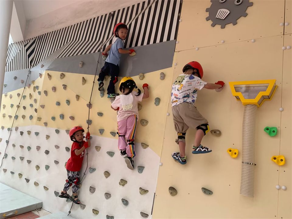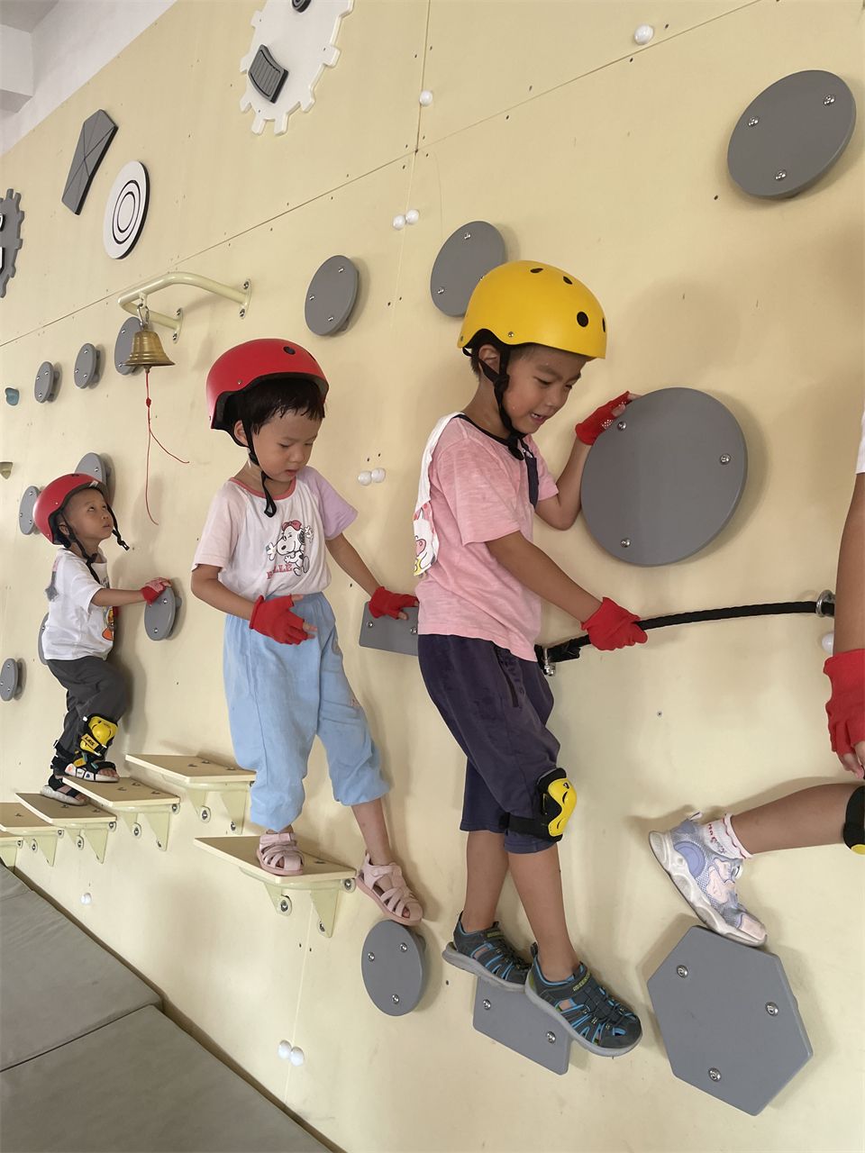 我们变成中班的哥哥姐姐,我们也变得更会玩了!看,我们在户外攀爬区里,自已穿戴上装备后就开始勇敢地攀爬。骑行区里,我们扮演小交警、小小外卖员、行人等,玩得不亦乐乎。当然了,淘气堡,书吧,角色室等也是我们的最爱。白城园区真的太玩了!