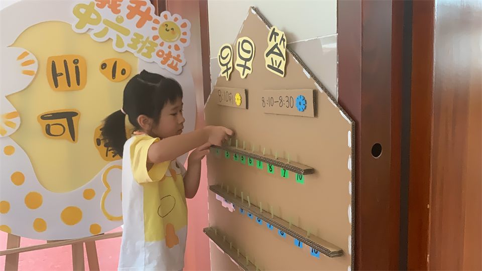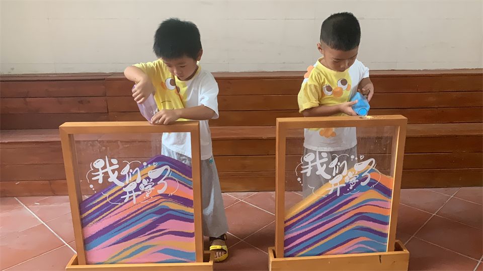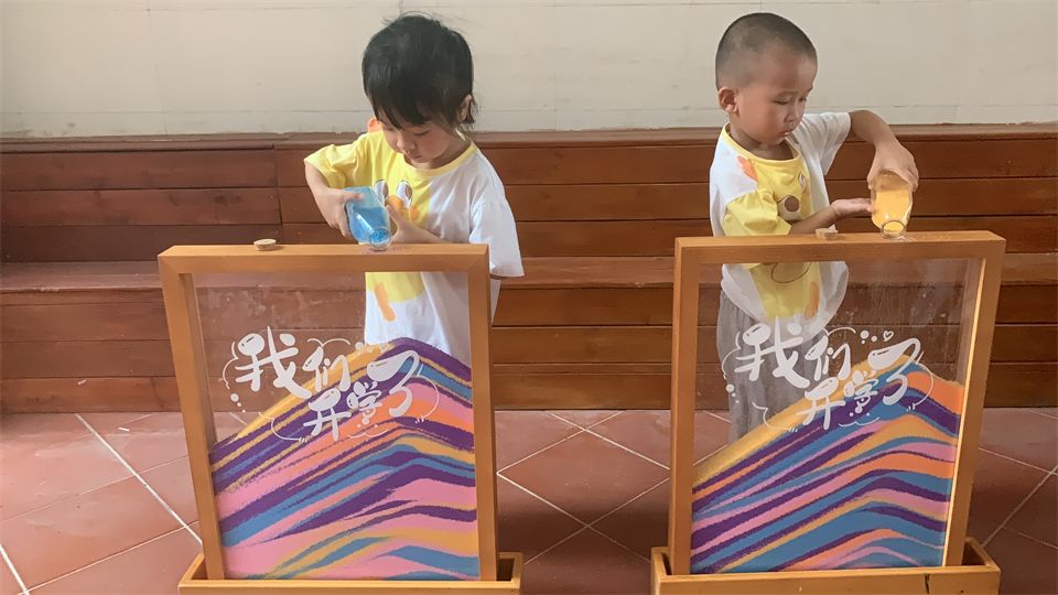 开学第一天,老师们给我们准备了仪式感满满的升班活动!我们一起将流沙慢慢倒入画框里,让一个个美好的记忆变成一幅精美的画。到班级了,我们用花片进行签到后,就忍不住和小伙伴说悄悄话了。