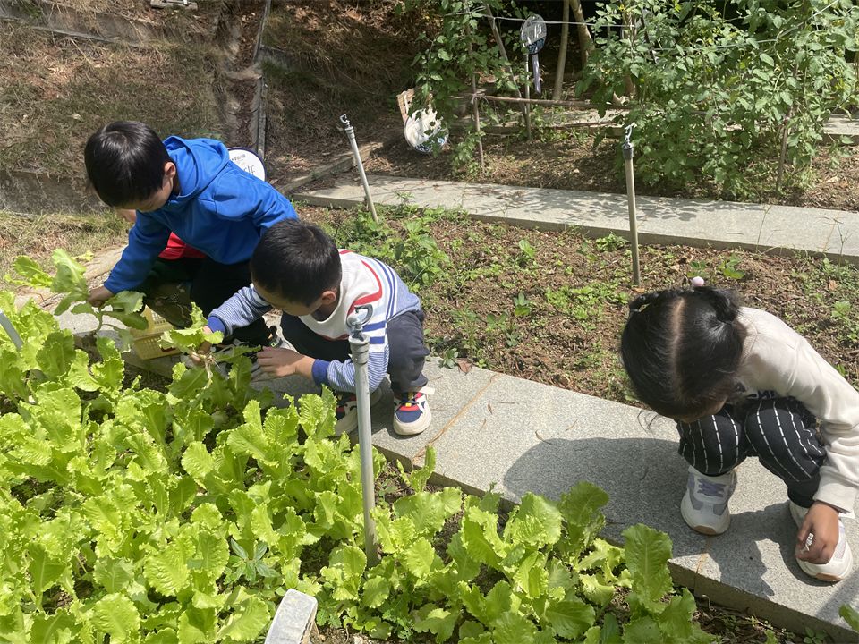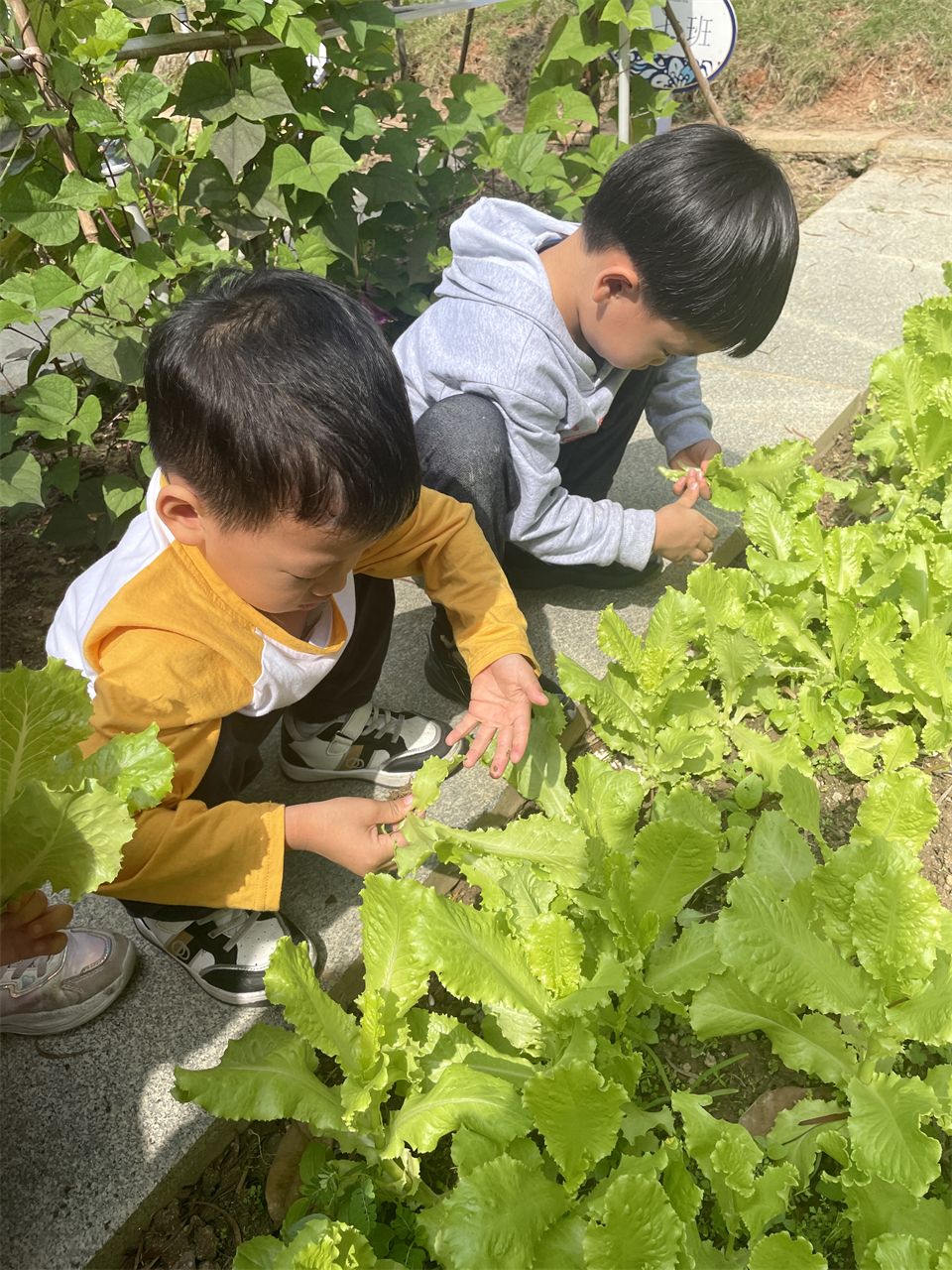 初冬,最是橙黄橘绿时。大自然中的每一个季节给予我们不同的感受。我园充分利用资源,因地制宜在山坡上为孩子们开辟了一块开心农场,让孩子在守护种子成长的过中程,慢慢感受到生命力的蓬勃,体验到劳动种植的乐趣。这不,开学初孩子们亲手种植的生菜,在孩子们的精心呵护下成熟,可以采摘啦!让我们去感受一下孩子们采摘的乐趣吧!