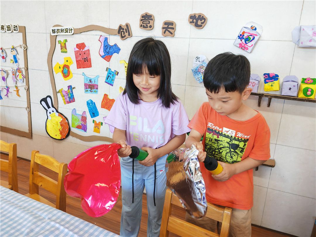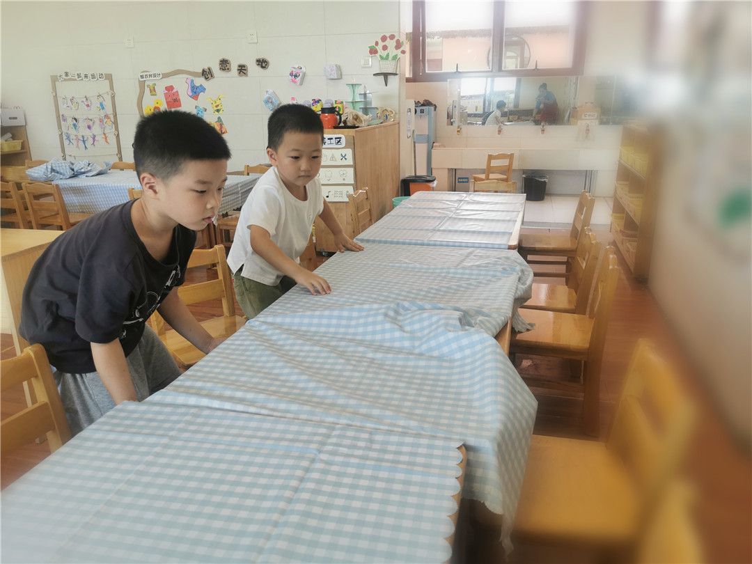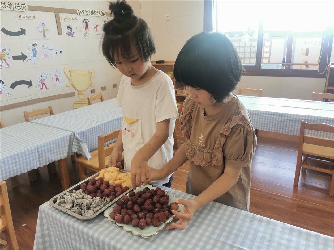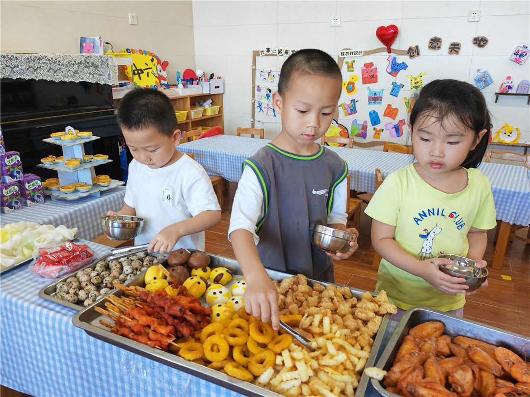 搬桌子、铺桌布、打气球、贴气球、食物装盘、摆盘......孩子们齐动手,一起打造一个了不起的自助餐环境。