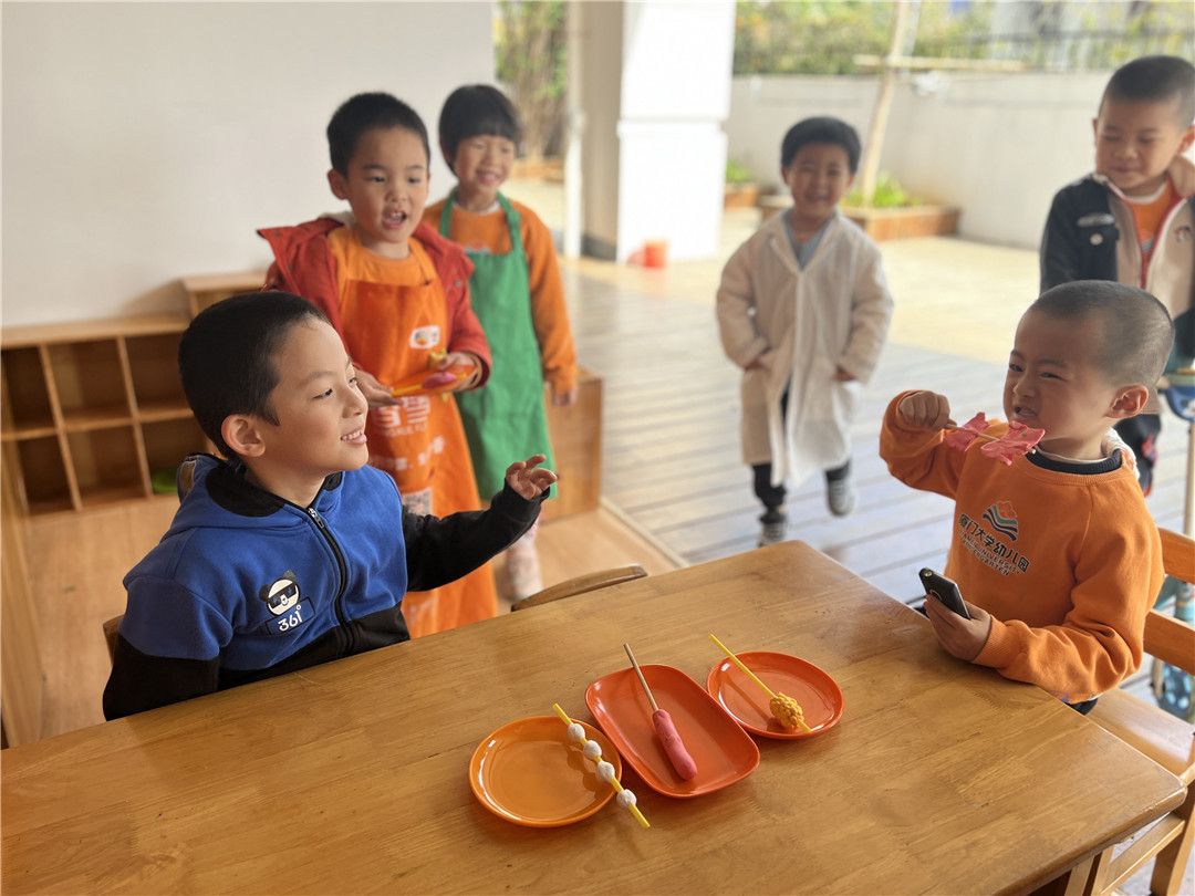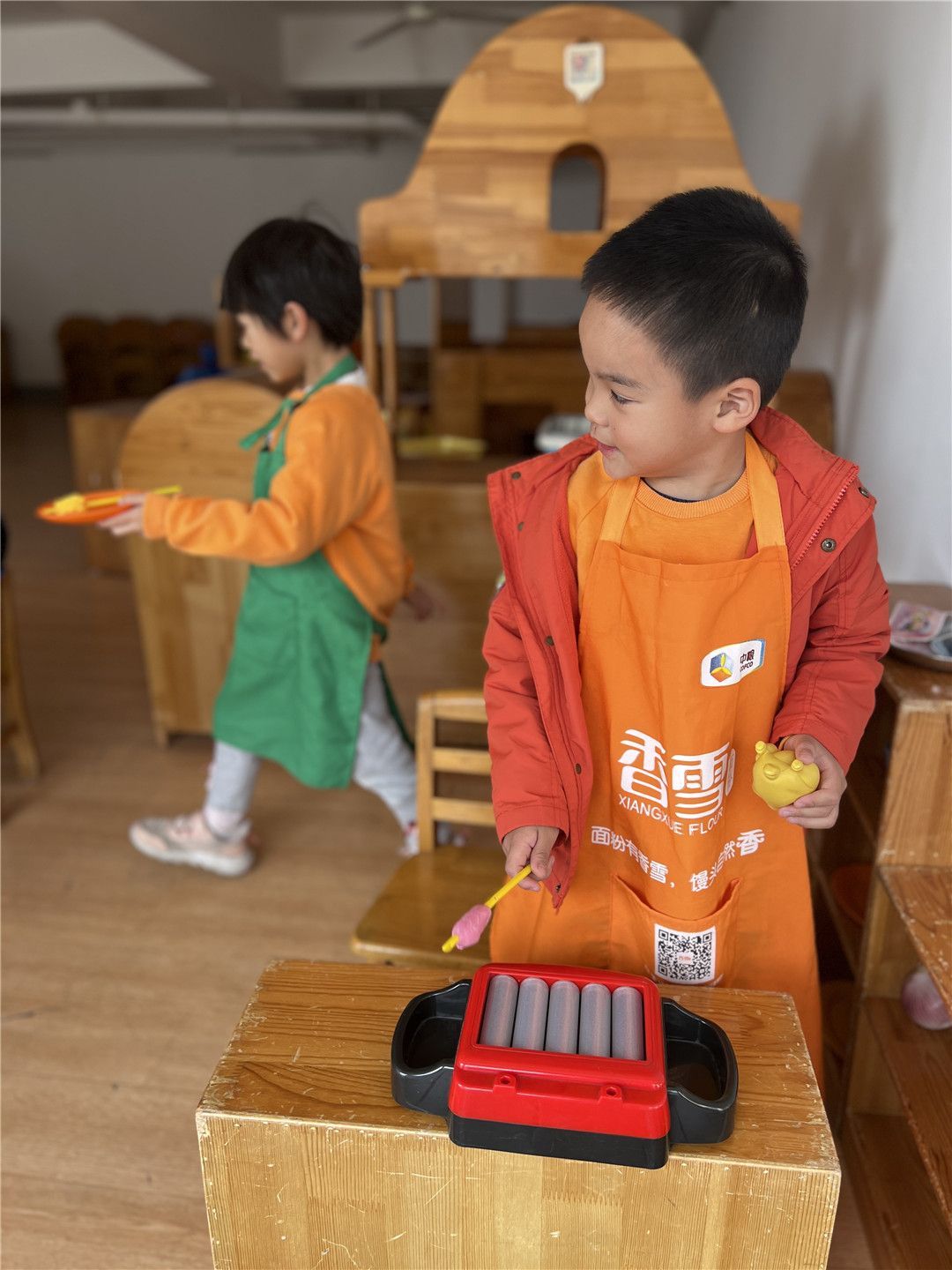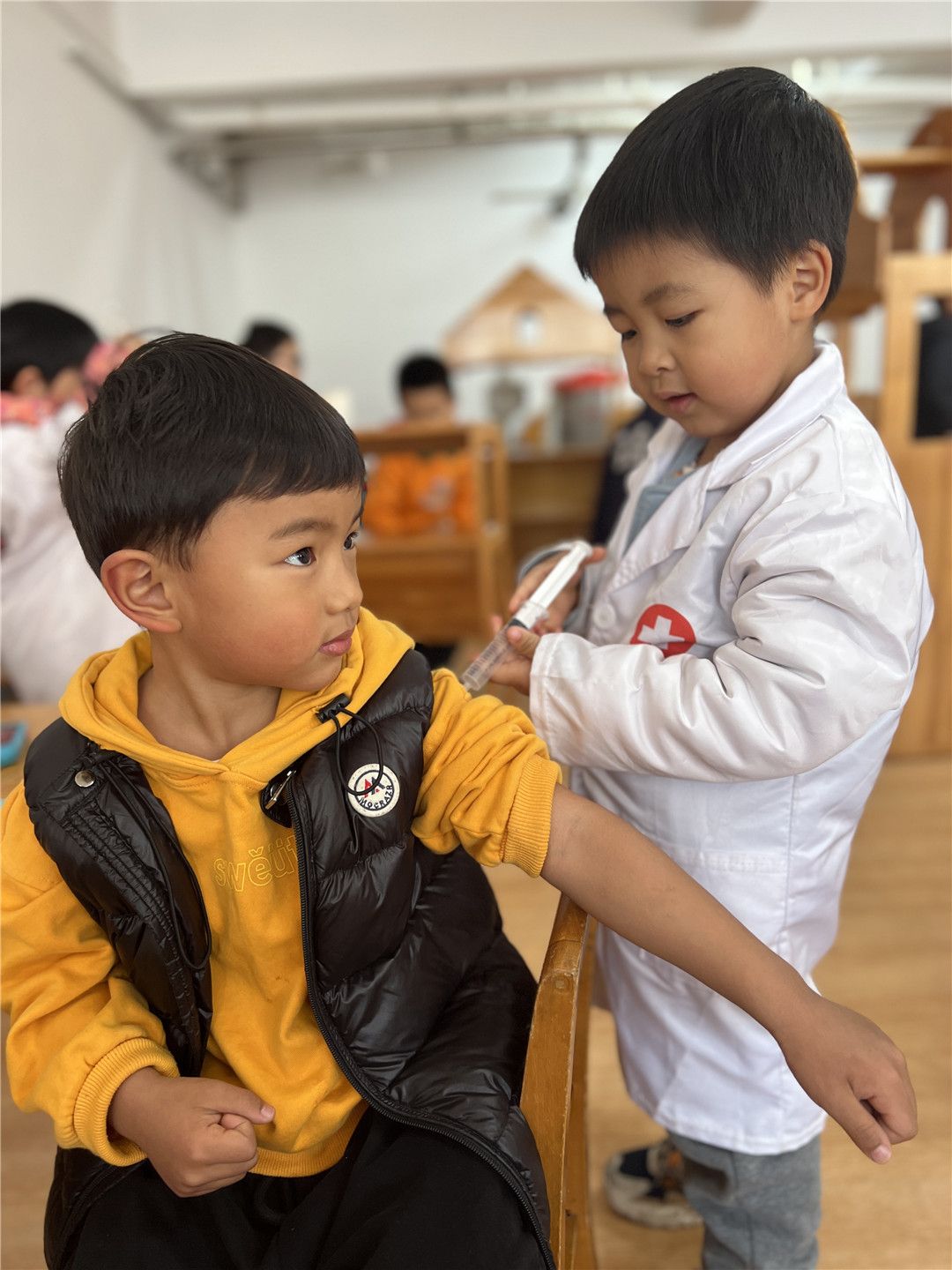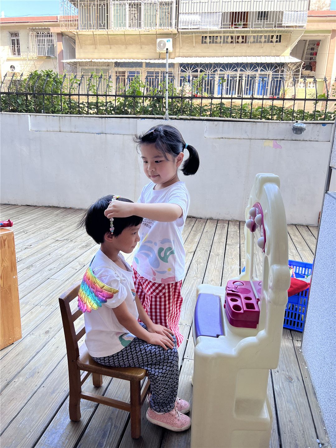 每个孩子都认真地进投入自己扮演的角色当中去。孩子们通过对现实生活的模仿,在游戏中学习如何与他人相处,体验快乐的童年生活。