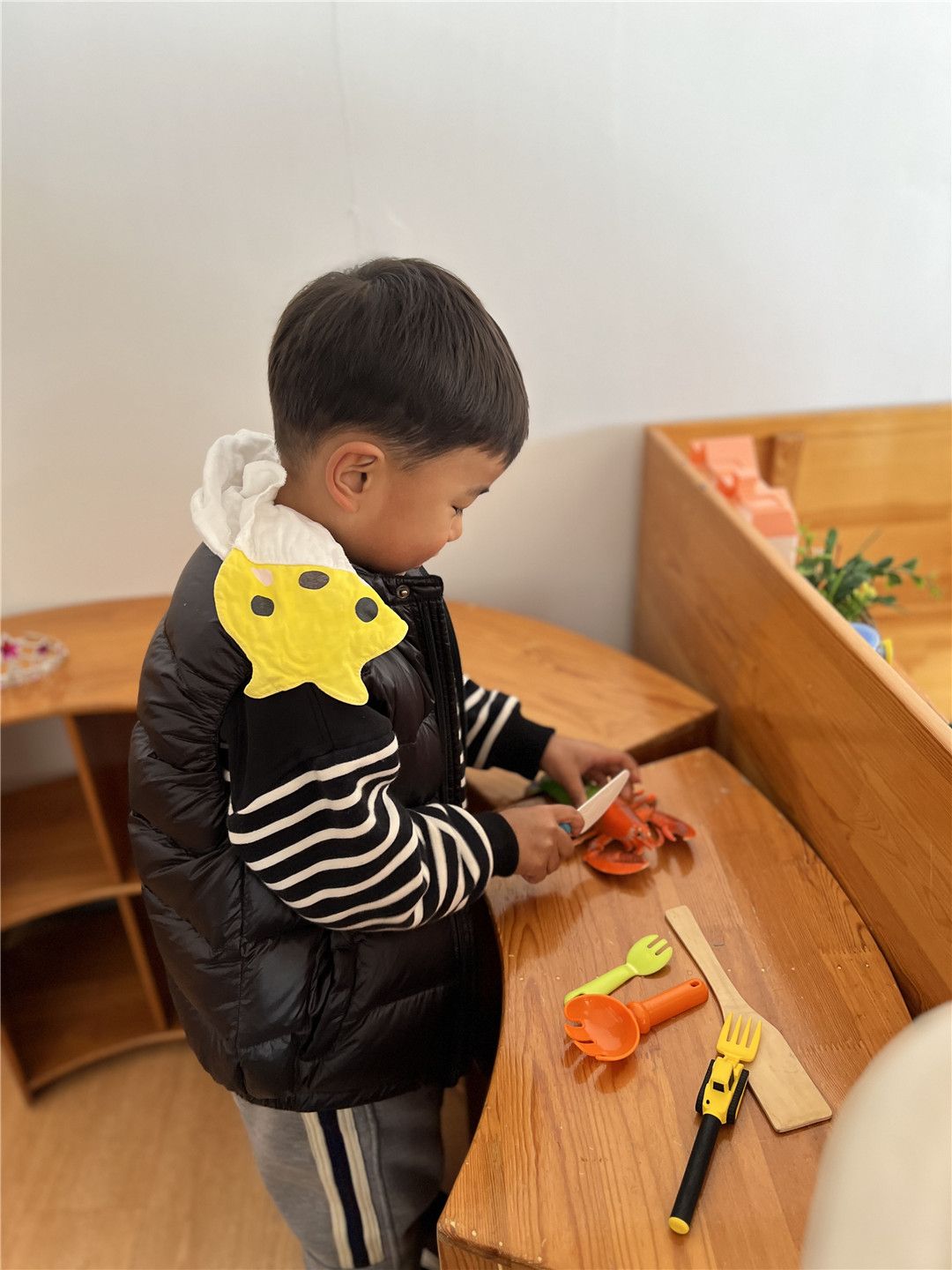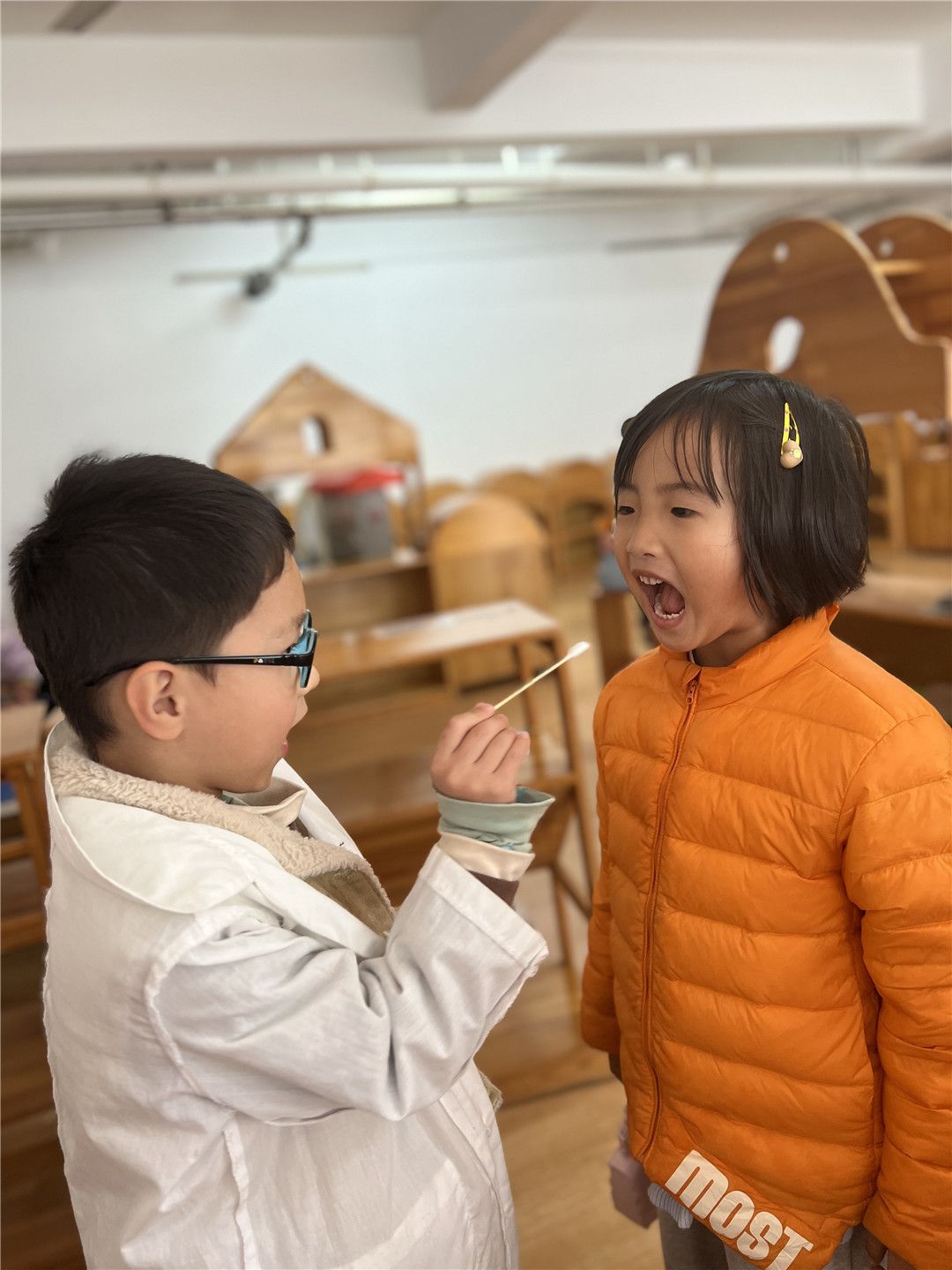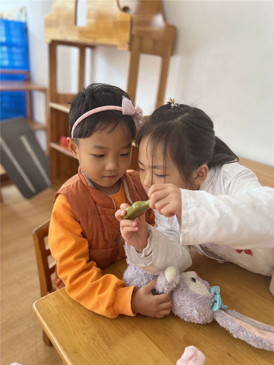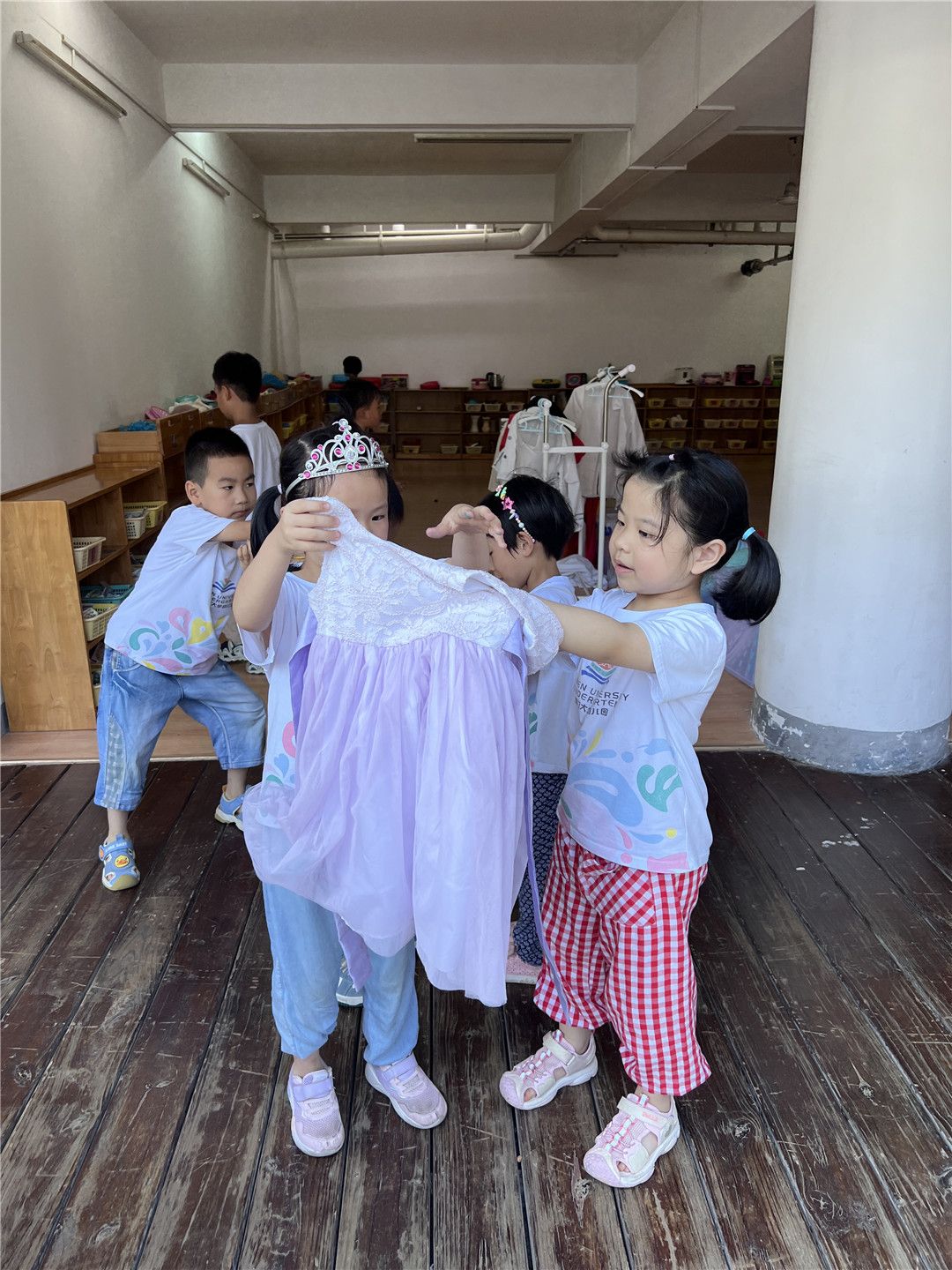 每个孩子都认真地进投入自己扮演的角色当中去。孩子们通过对现实生活的模仿,在游戏中学习如何与他人相处,体验快乐的童年生活。