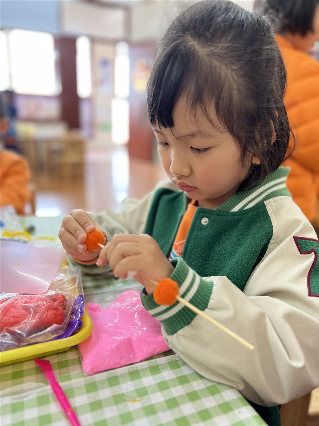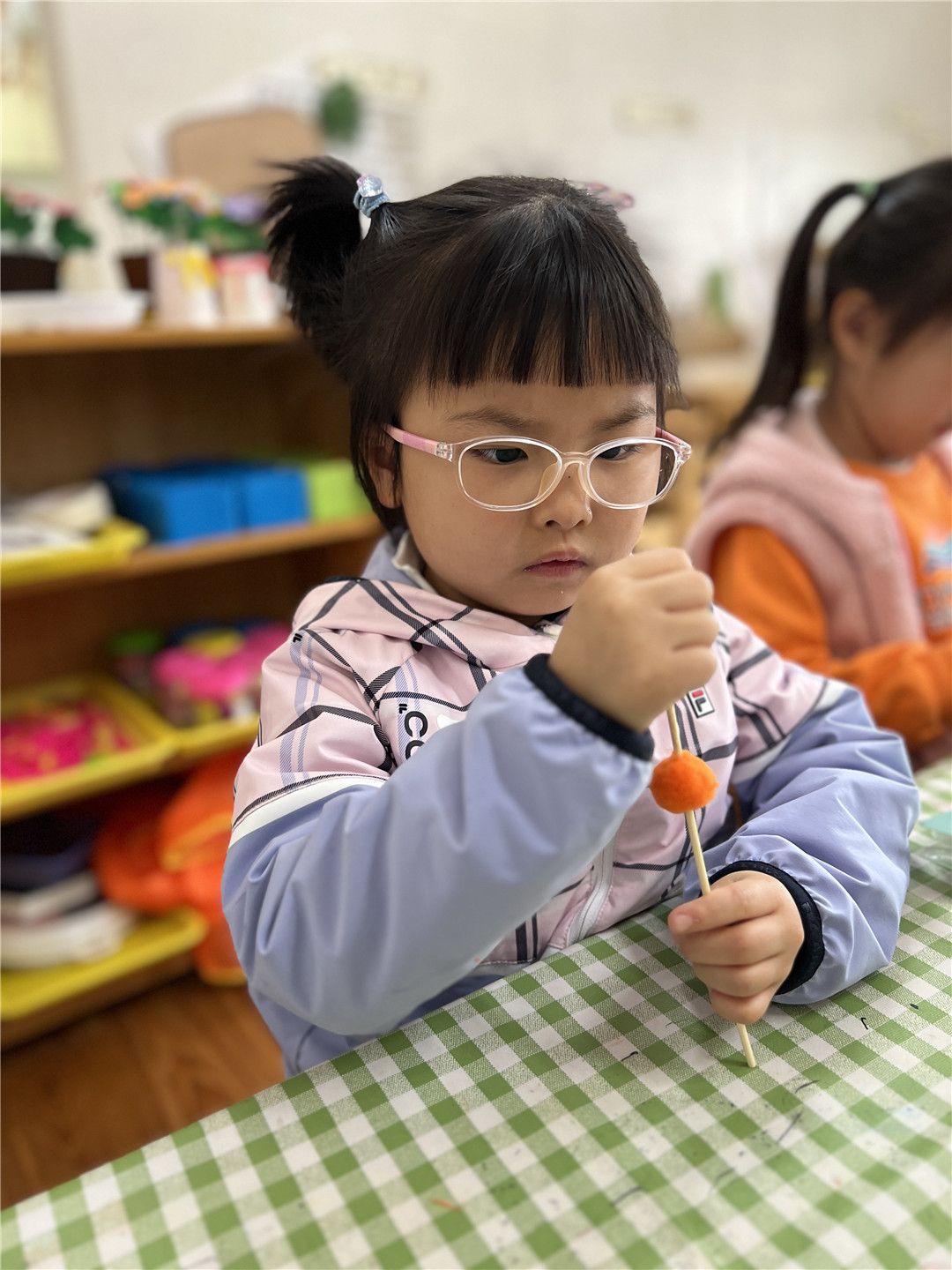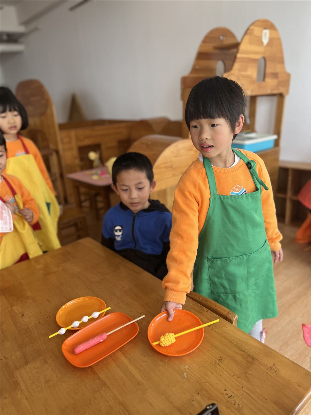 玉米、金针菇、香肠、五花肉、青菜.....这些都是孩子们爱吃的烧烤食物,大家开动脑筋,选择各种材料动手制。