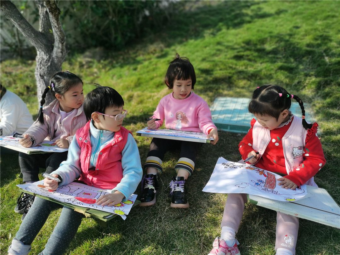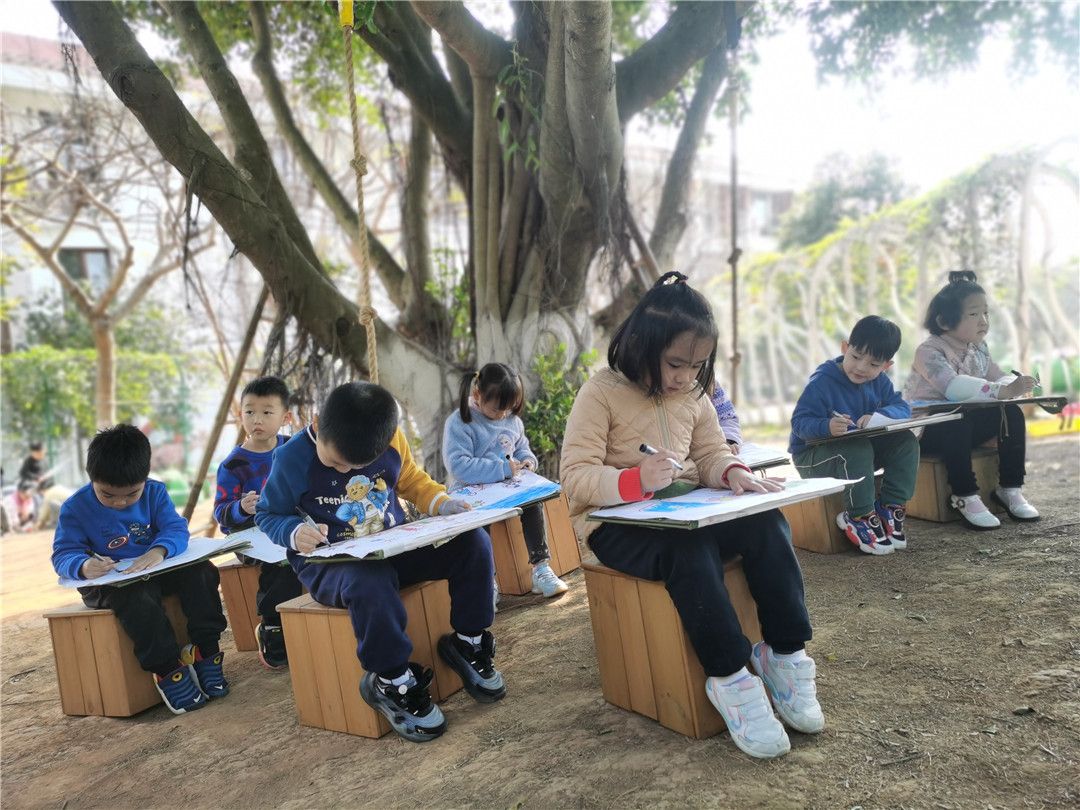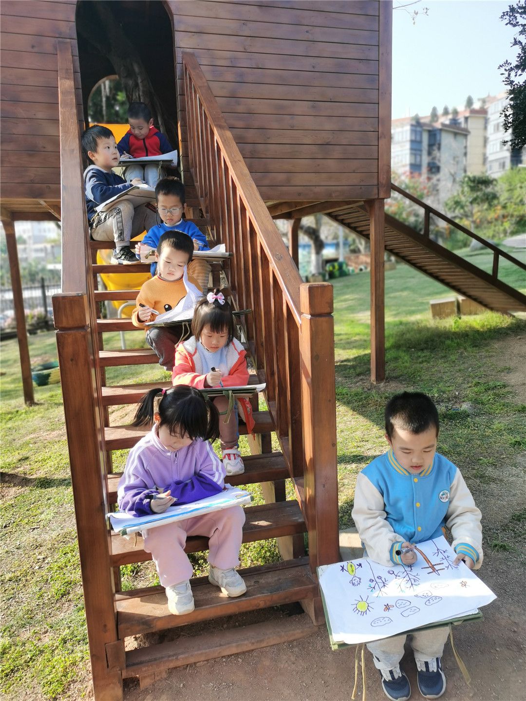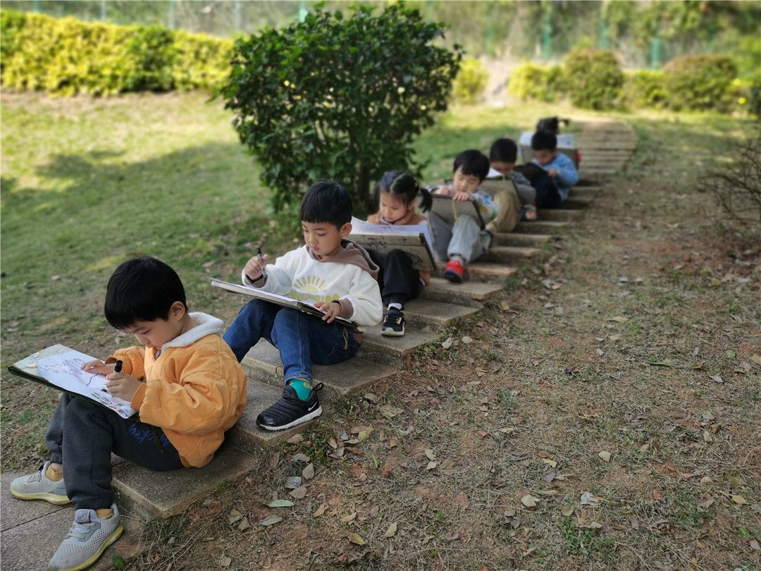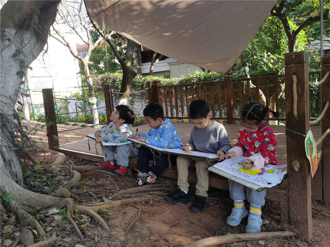 孩子们找到自己喜欢的位置,舒服的坐下。在阳光下,一张张稚嫩的小脸,一双稚嫩的小手描绘着初冬的美好。