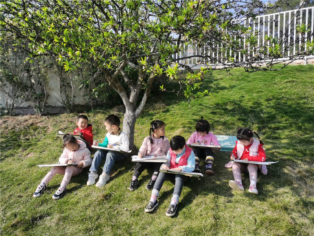 “老师,小山坡的春天简直太美了,温柔的阳光照在身上好舒服呀!”先来问问可爱的孩子们如何记录美景。“老师,我知道,可以用手机来拍照!”“可以画下来,我最喜欢画画呢!”程程认真的说着。“如果能直接坐在小山坡画画,还能晒着太阳,欣赏美丽的花朵、小树,那简直就是太棒了!”在一片赞同声中,孩子们拿上画板出发咯!