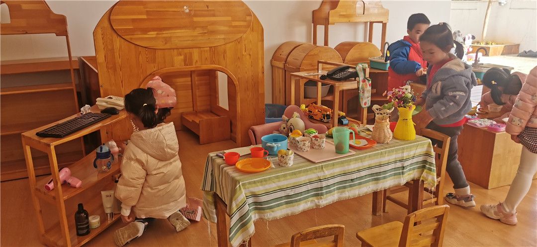 “我们要玩娃娃家,你来当爸爸,我来当妈妈,还有姐姐和妹妹。”