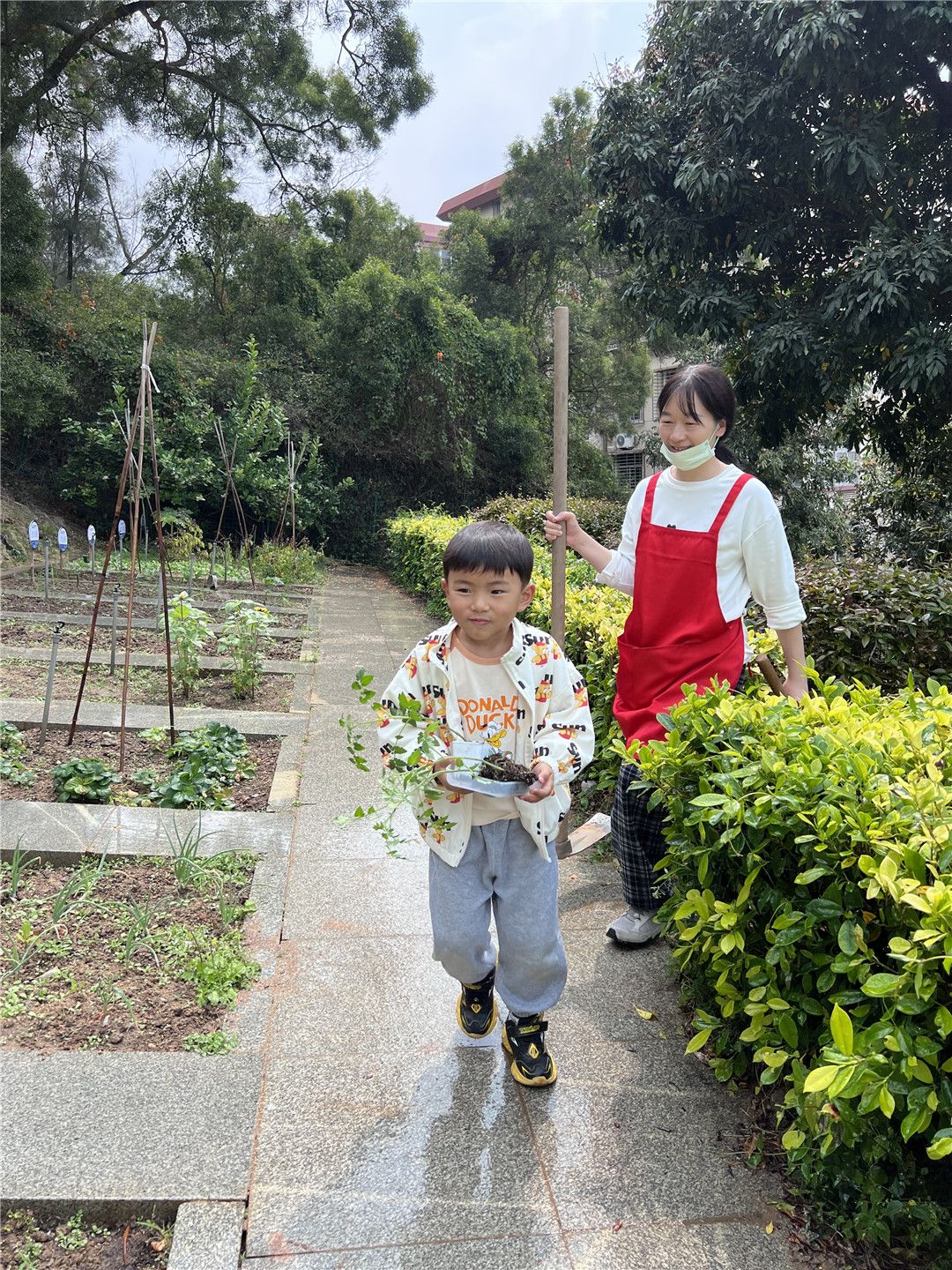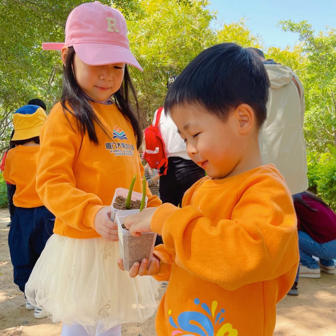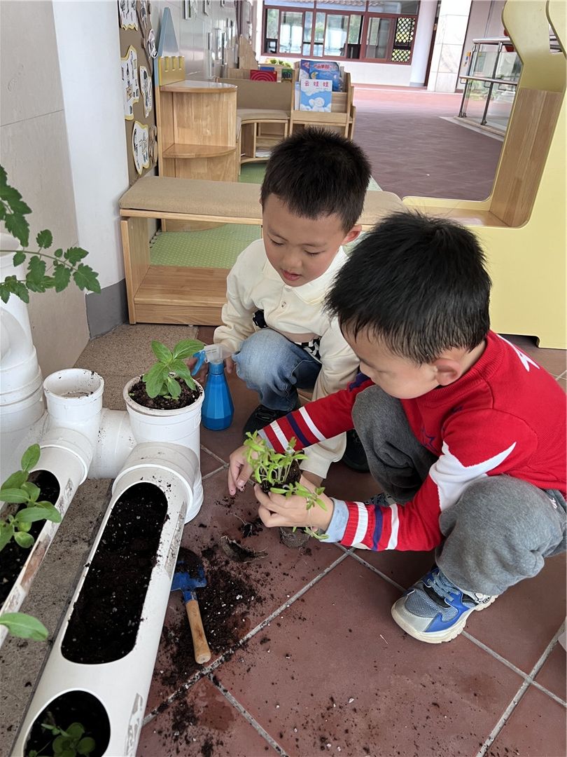 他们在种植盆子里放入一颗颗“希望”的种子,一起想象着:它会开出美丽的向日葵吗?它会长成一颗西红柿吗?真期待它们发芽呀!快看呀!