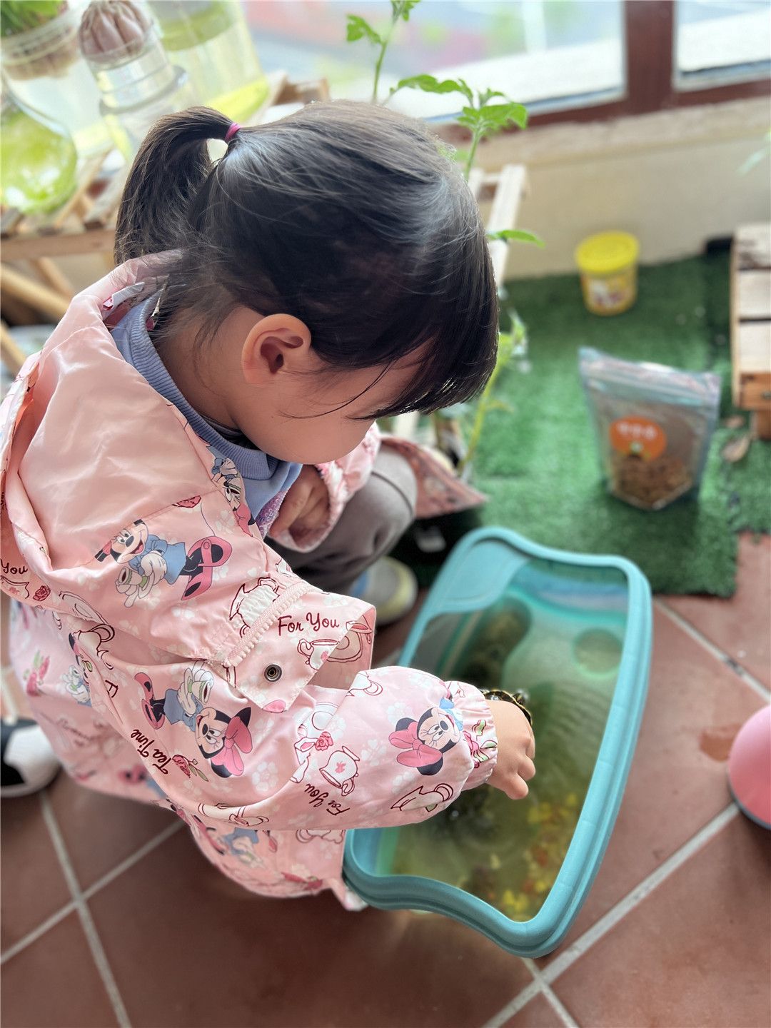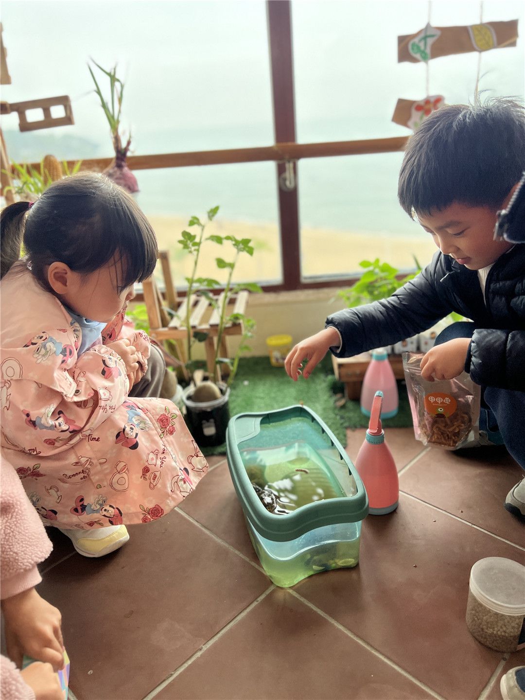 动物角里的小乌龟好可爱,在爱抚着可爱的小生灵的同时还要照顾小动物的饮食起居,大家都发现照顾小动物也不是件容易的差事。