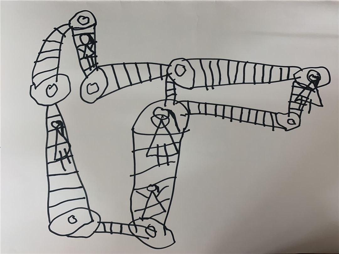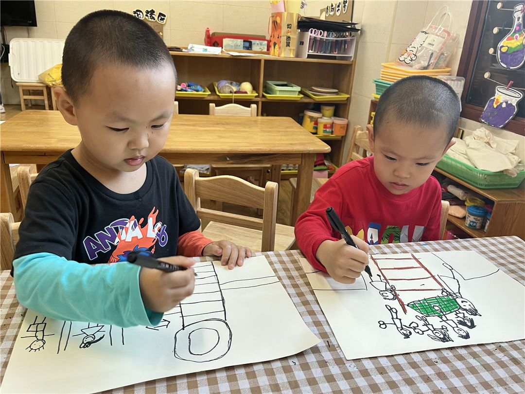 基于孩子们的兴趣点和已有经验,我们带领孩子们到山坡观察场地、感知轮胎,并进行探究,满足幼儿探索求知欲。经过一段时间的探索,孩子们对轮梯游戏的玩法有了一定的了解,并用纸笔做了简单的计划。