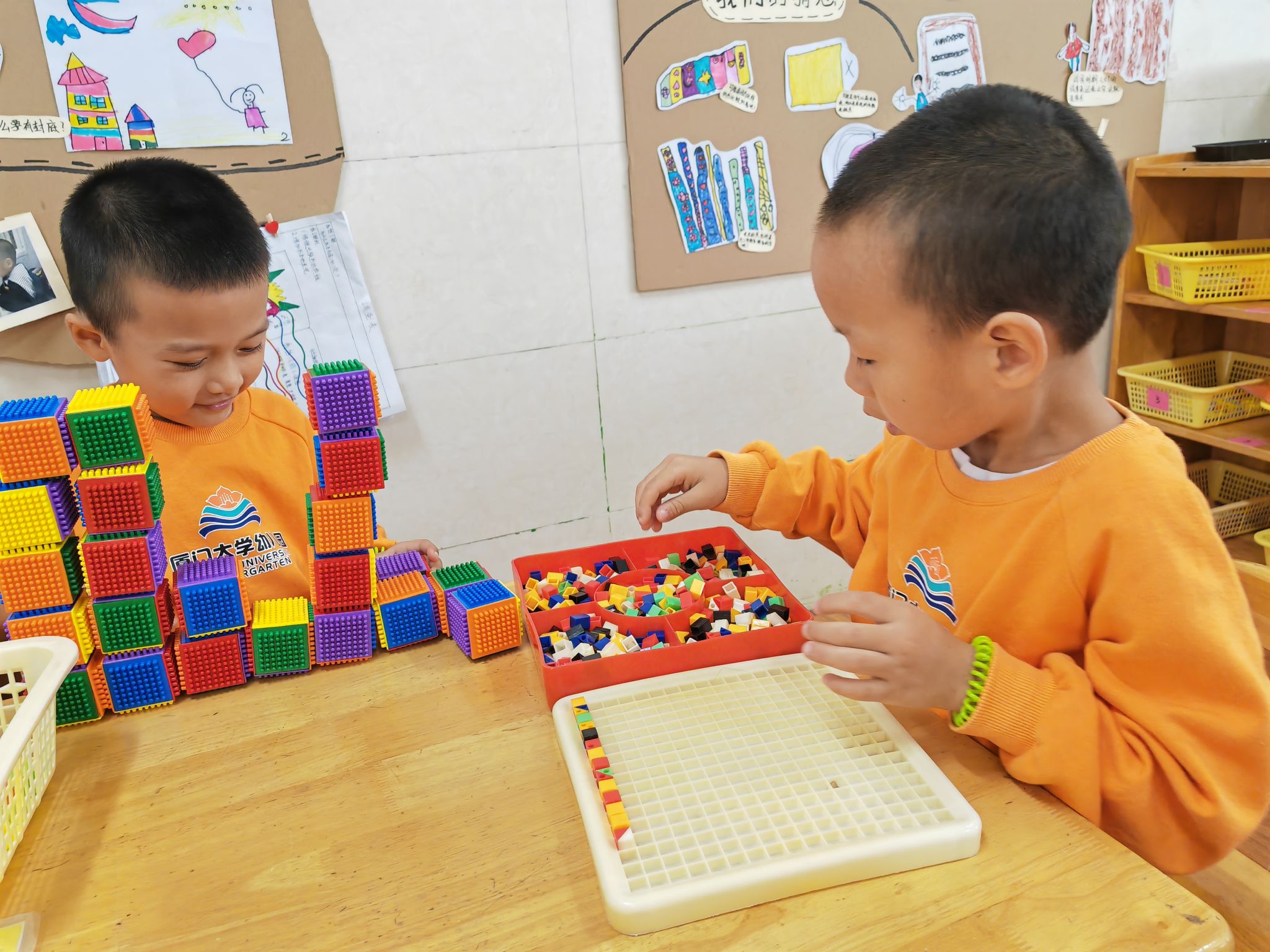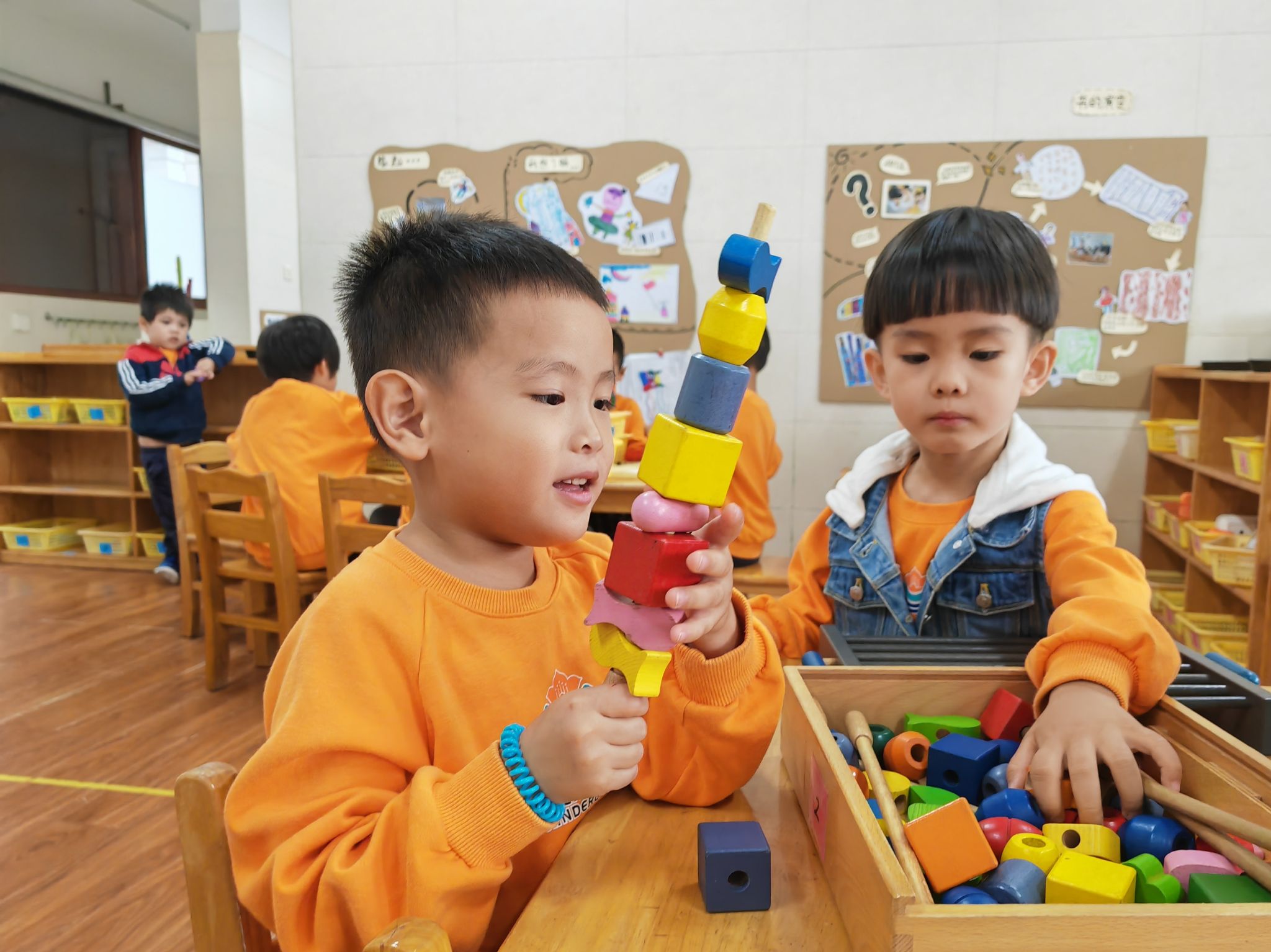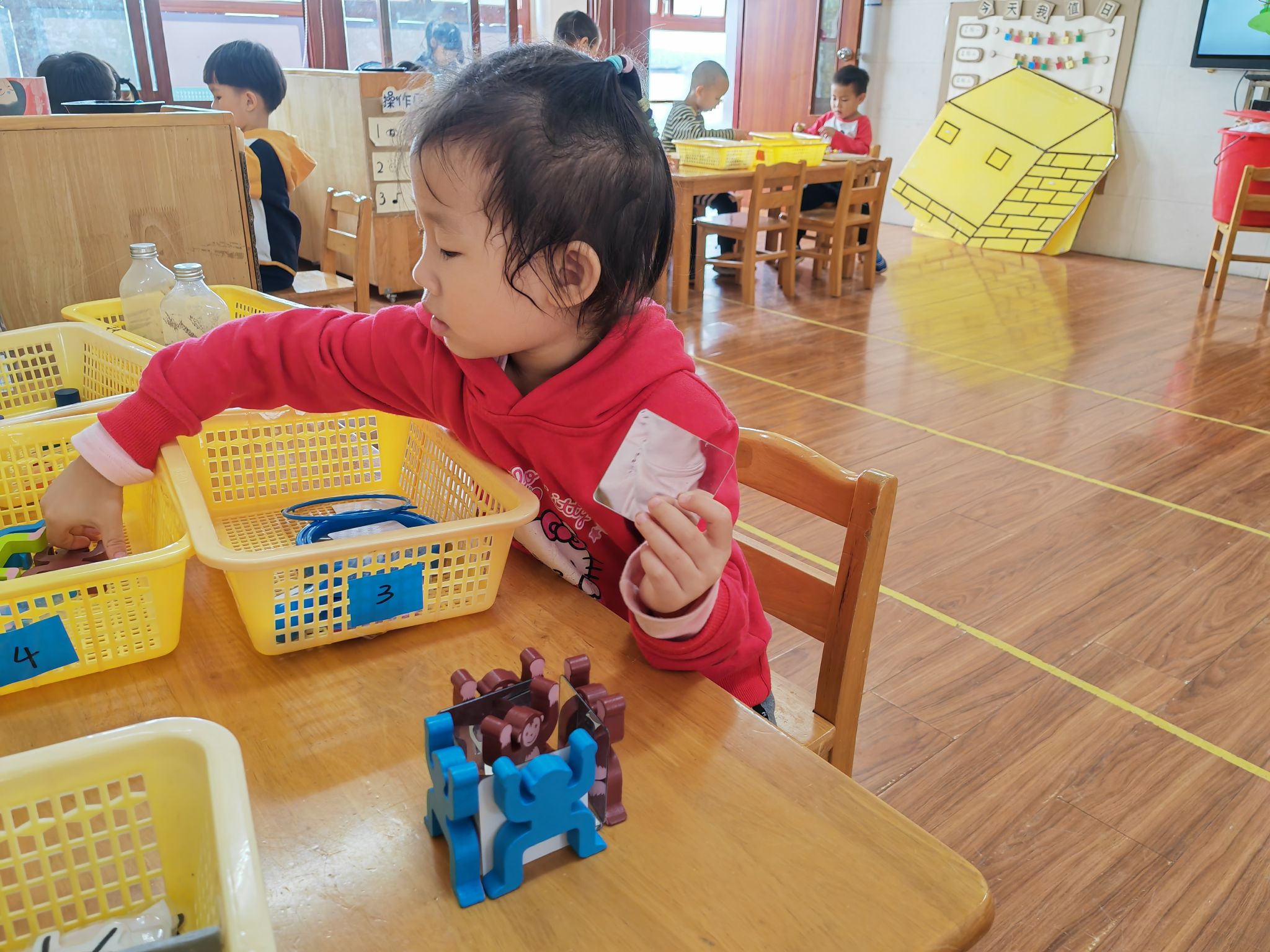 看看数学区的小朋友们在做些什么?