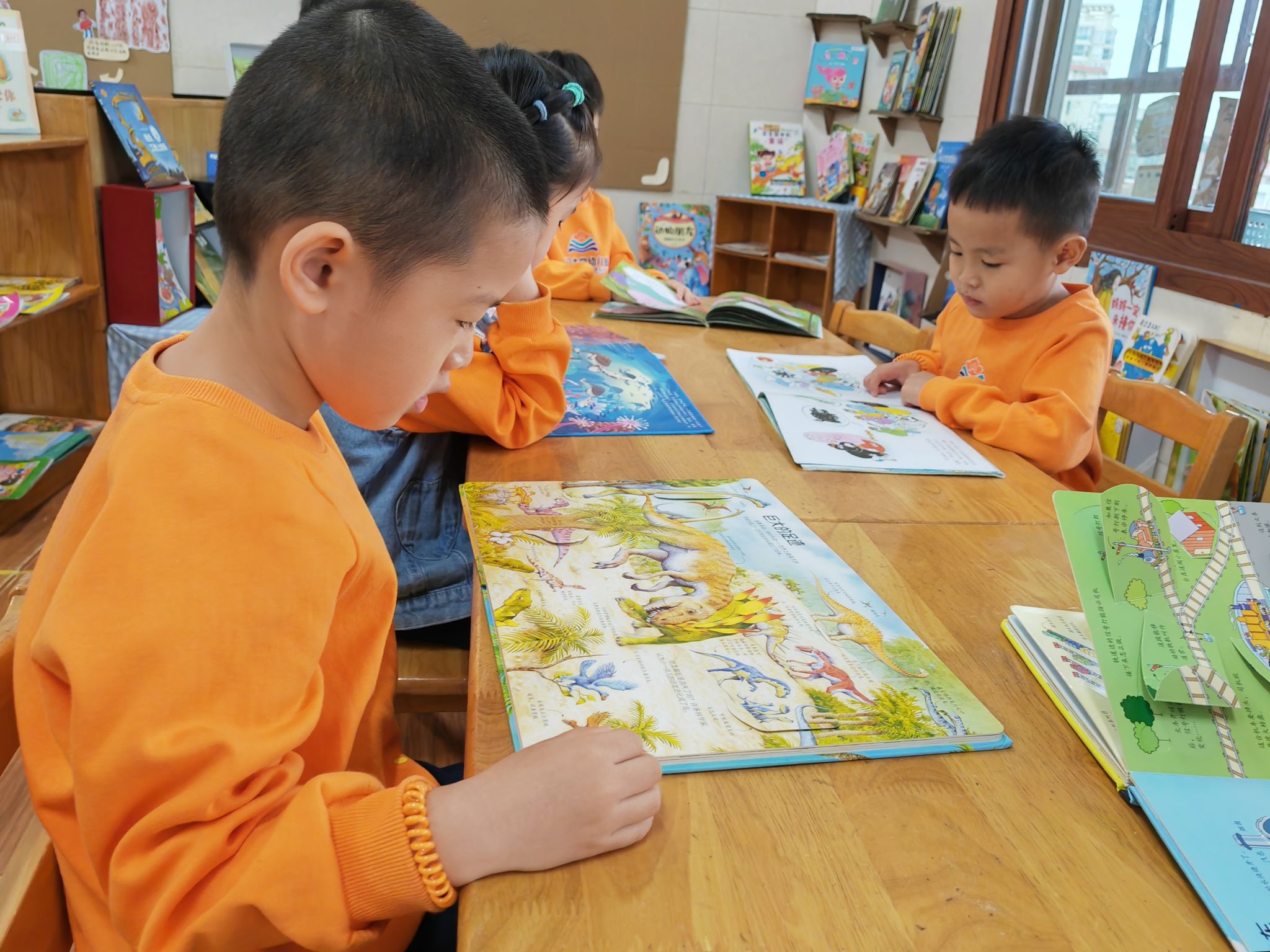 温馨的阅读区,总藏着一本孩子最喜爱的书,在那本书里,藏着一个秘密,藏着一个广阔的世界,给孩子们无限的遐想……