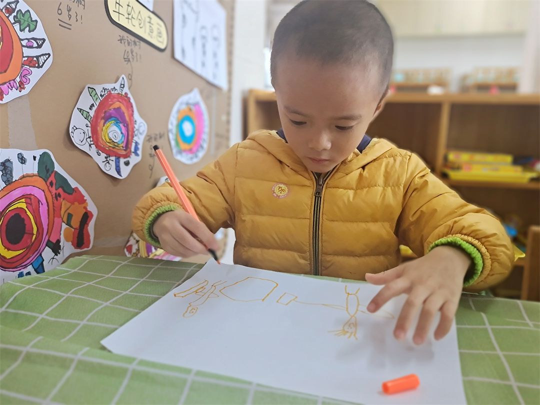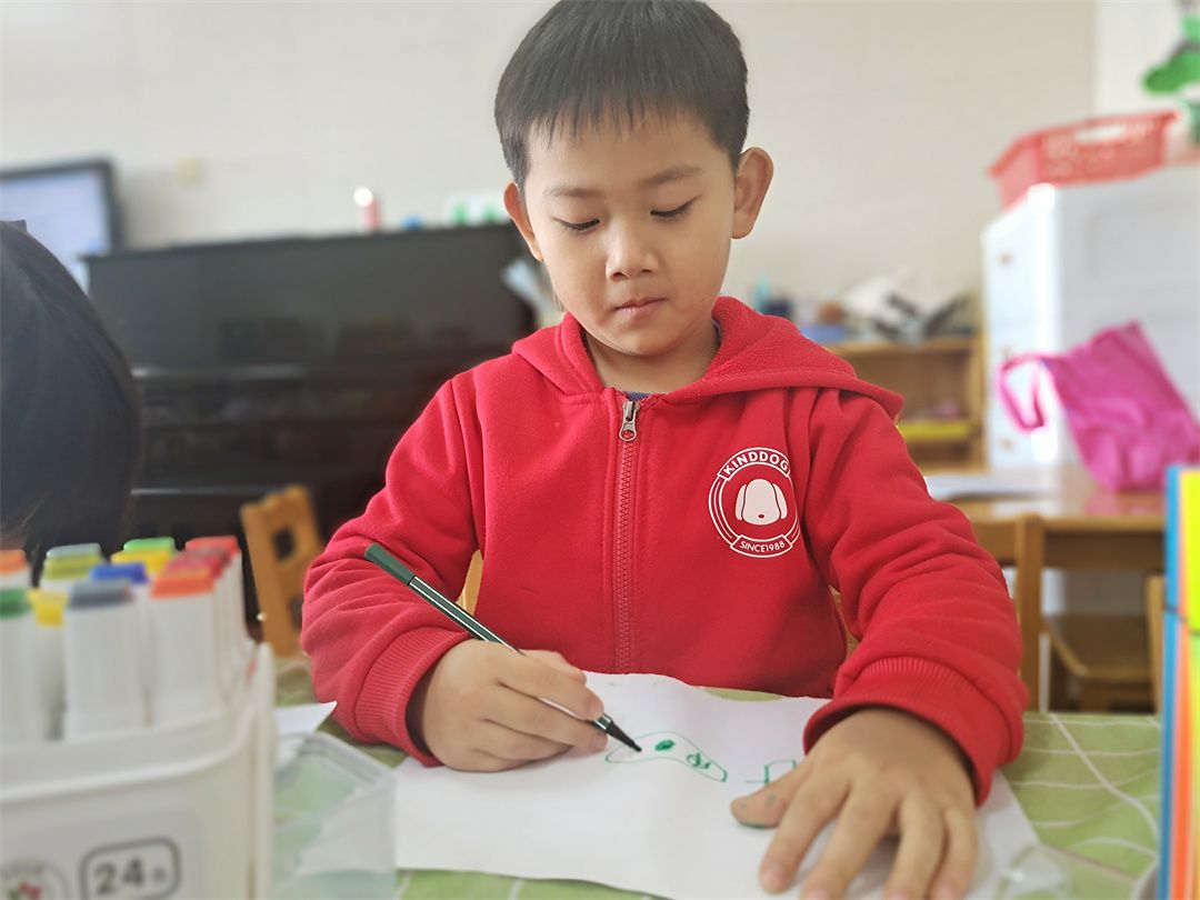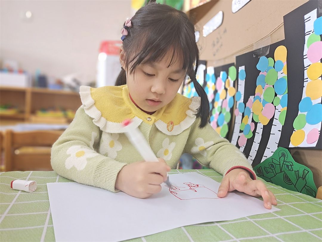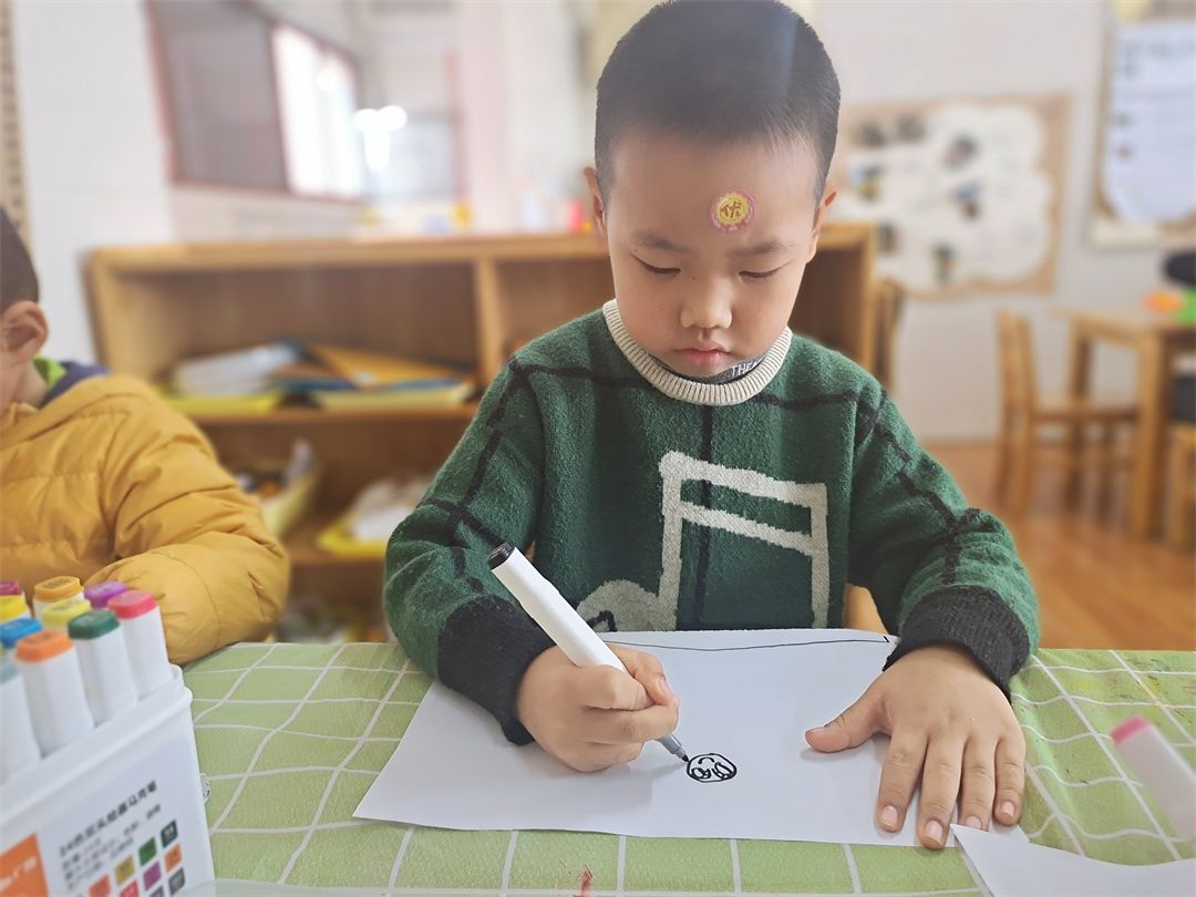 接下来看看美工区的小朋友都在聚精会神画什么呢?原来她们正在画自己的寒假计划呢。