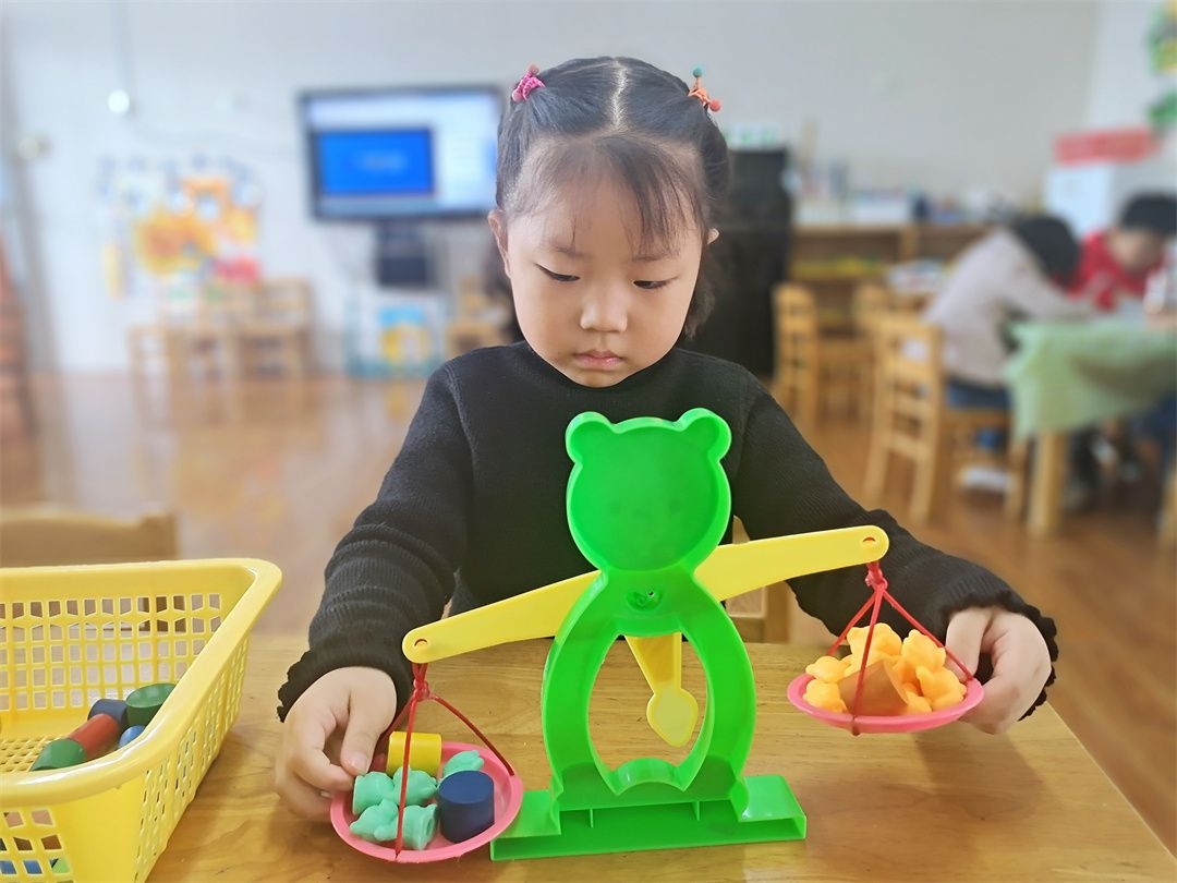 首先来到的是科学区,要怎样才可以让天平保持平衡呢?