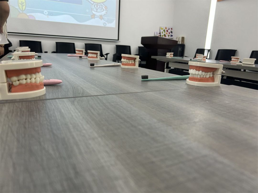 桌面上整整齐齐的摆着牙齿模型和牙刷,它们期待着这群小牙医们的到来!