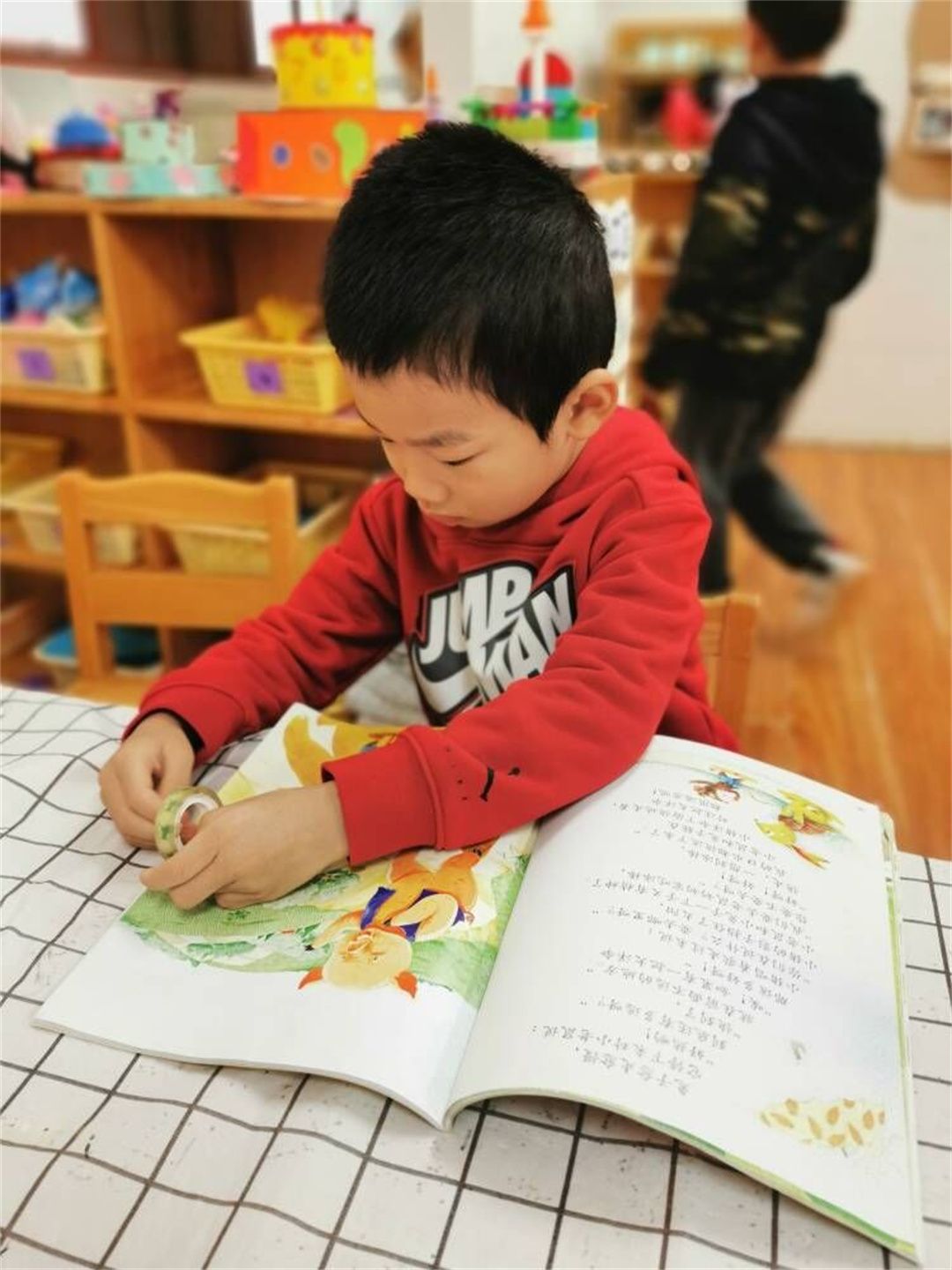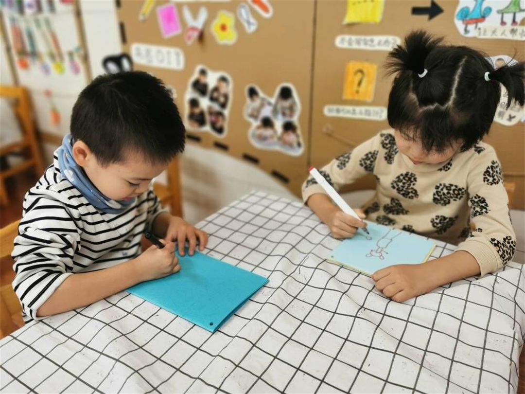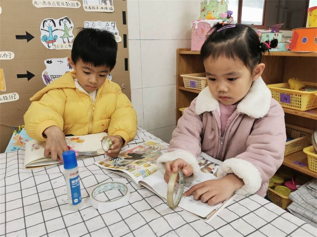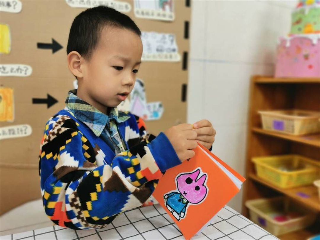 幼儿每天都在阅读,随着阅读量的增加,好的绘本就会在孩子心中留下印象,瞧,孩子们正在认真的制作属于自己的绘本!