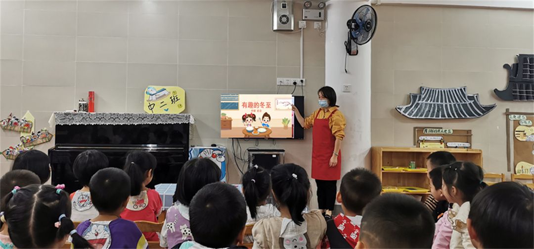 活动中,老师讲述着关于冬至的由来,冬至里都会做些什么有趣的事,孩子们听得津津有味。冬至是我国的传统节日,是全年中白天最短,黑夜最长的一天,更了解了过冬至要吃汤圆的习俗。