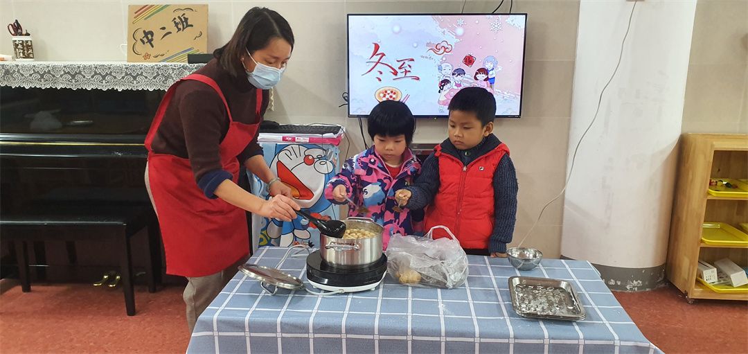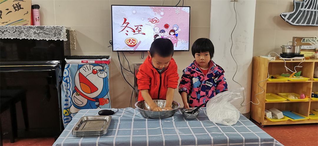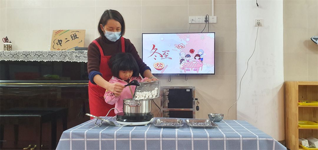 冬至是中华民族的一个传统节日,自古就有“冬至大如年”,还有食了汤圆大一岁的说法。说到冬至节,不是每个中国的孩子都知道。由于时代的变迁,一些隆重温馨、丰富而又意义的传统节日习俗正在被人们淡忘和简化。为了让孩子们了解这一传统节日,中二班开展了“暖在冬至”活动。
