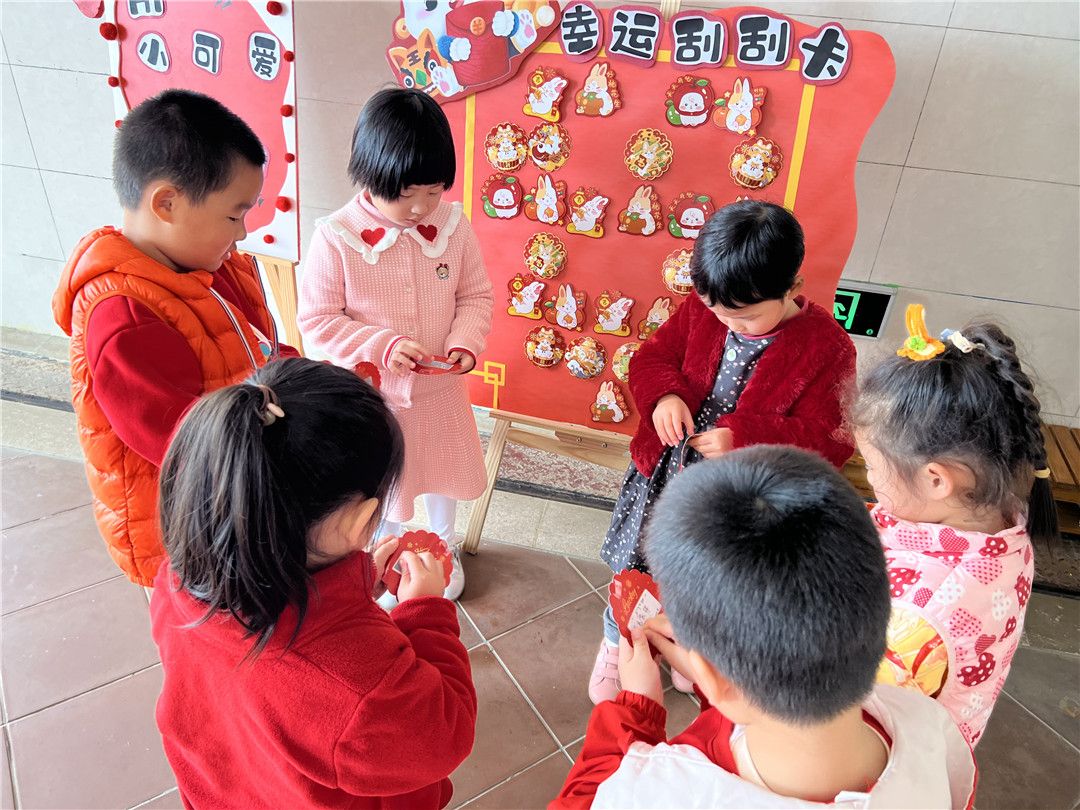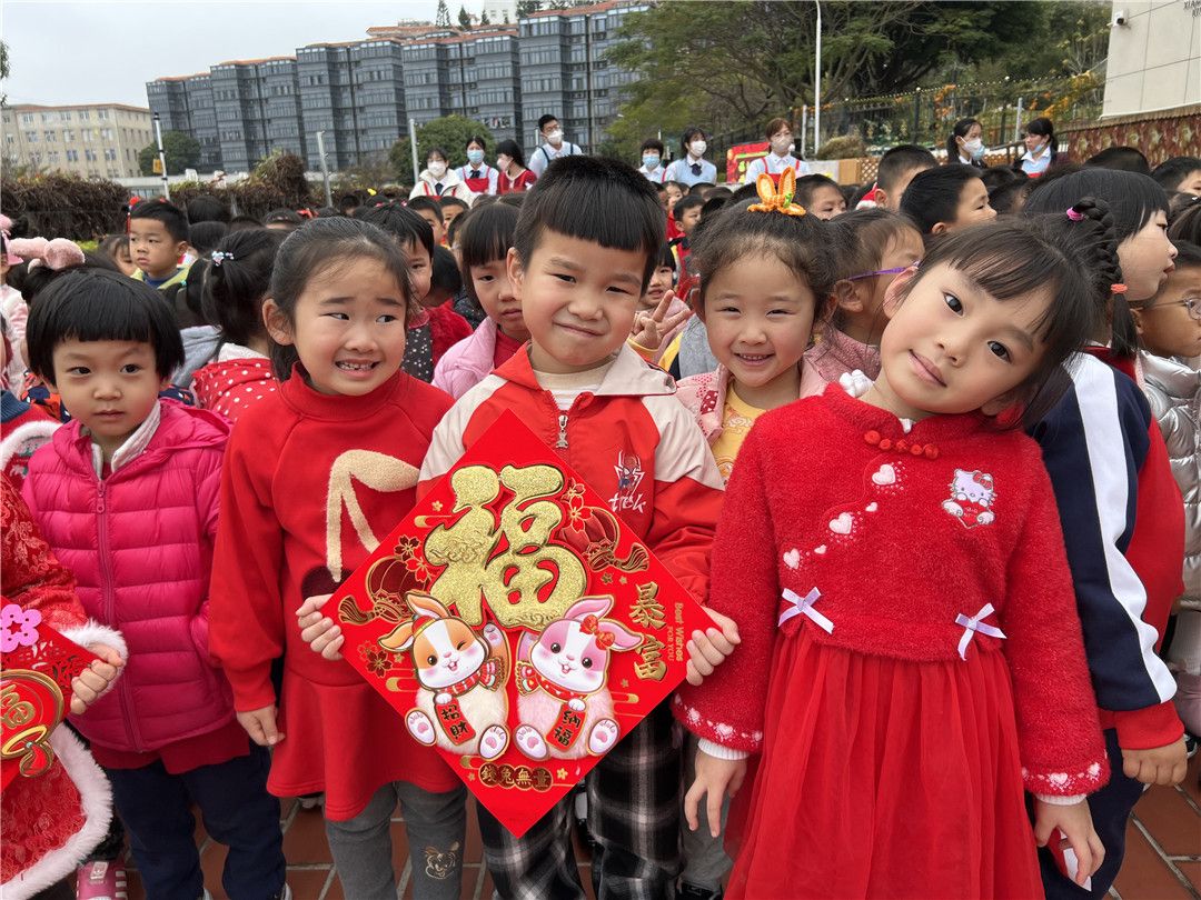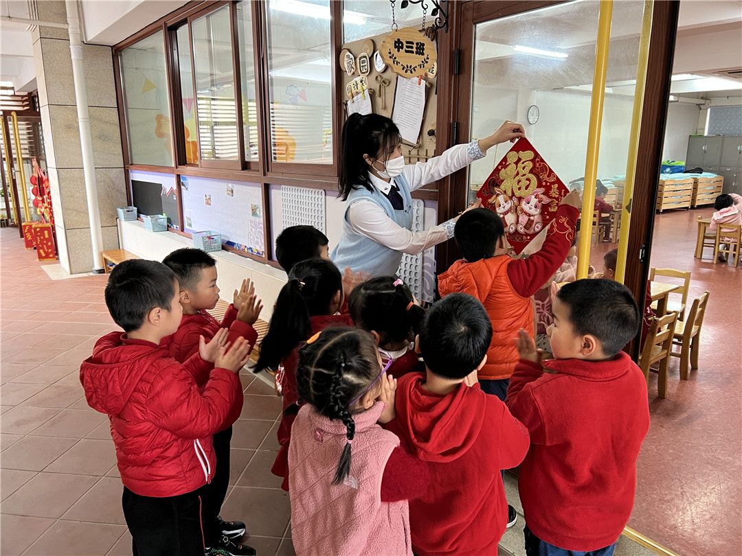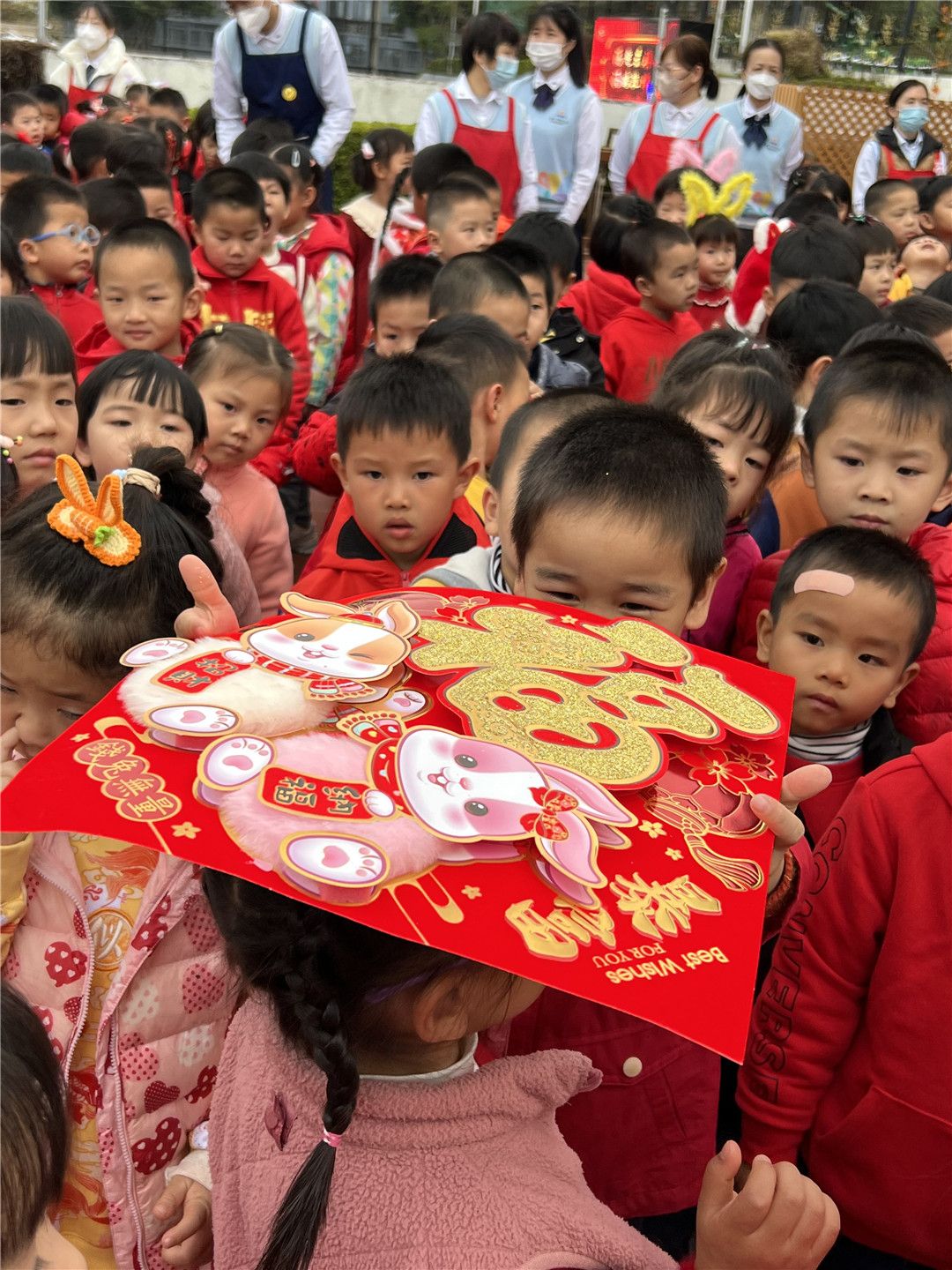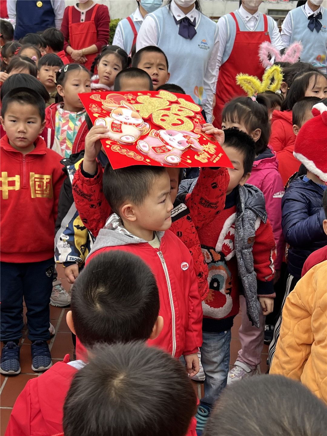 接“福”贴“福”咯!美好的祝福在孩子们手中传递,队伍瞬间沸腾,萌娃们开心极了,祝愿萌娃们在新的一年里福气多多,所有美好都如期而至。
