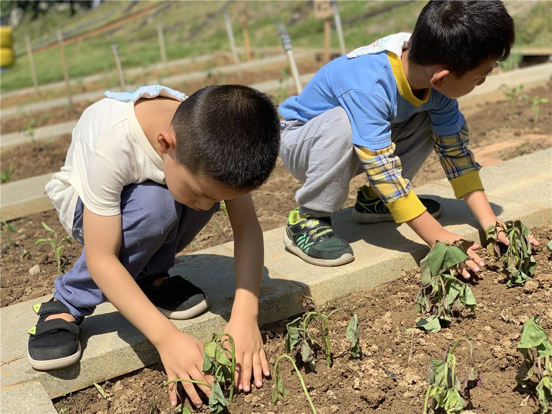 看着地瓜宝宝们绿意盎然、生机勃勃,我们开心极了!再拔拔小草,让它洗手更多的营养吧!