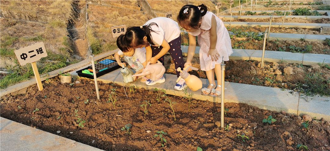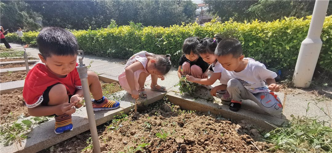 不仅如此,宝贝们还去照顾我们菜地的植物,为我们播种的小辣椒、西红柿、胡萝卜除草、浇水。