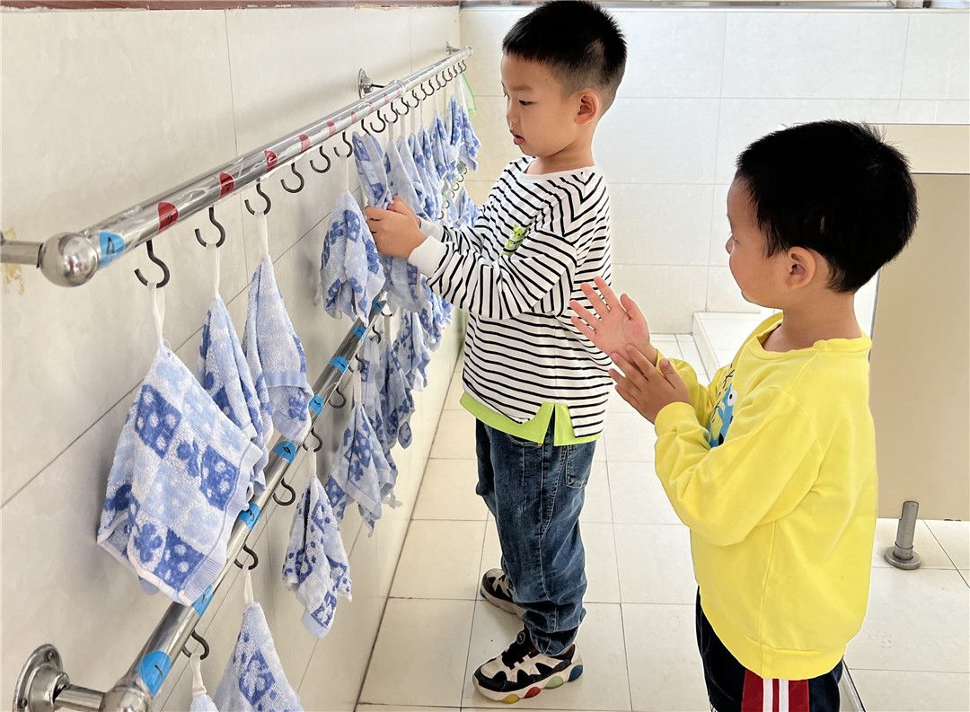 午餐前,帮老师分毛巾、摆好小椅子,还要提醒小伙伴洗手的时候要卷袖子呢。