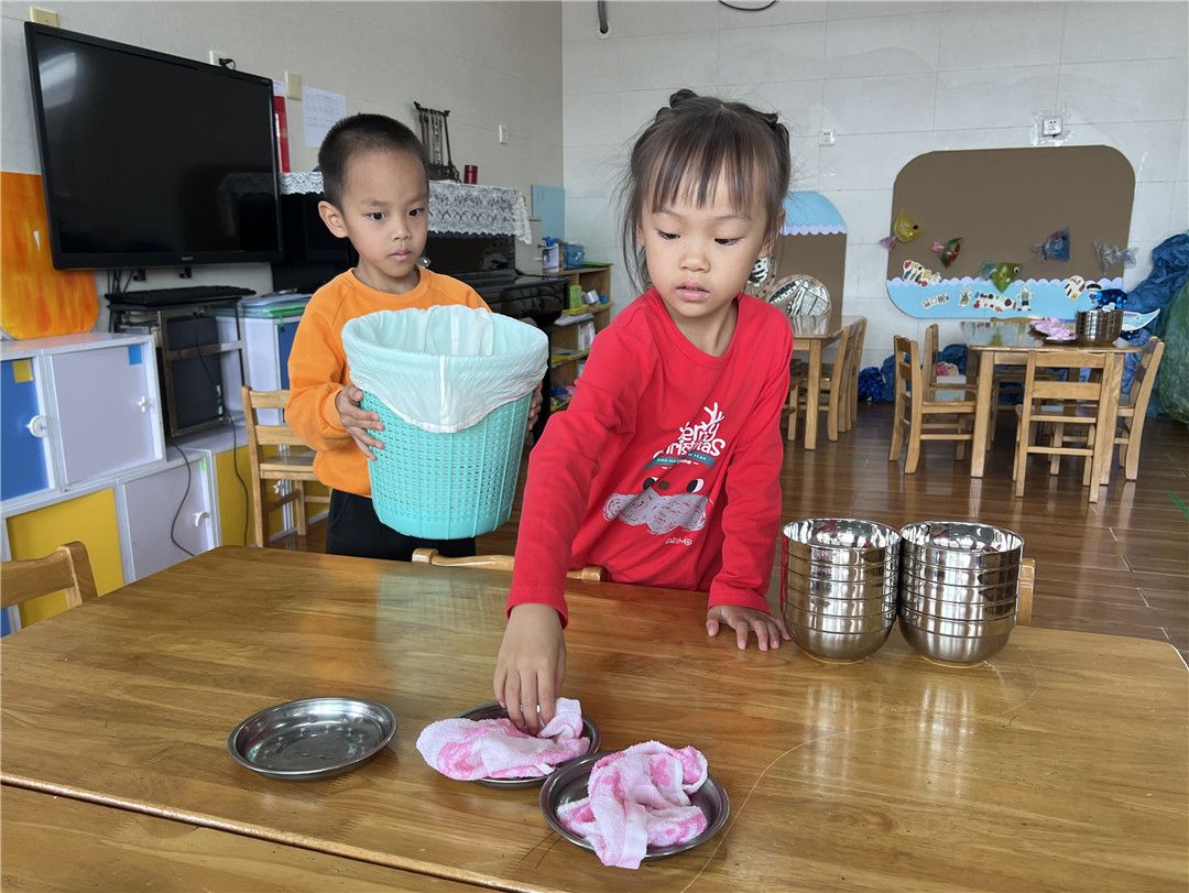 午餐之后,摆放桌椅、洗晒、整理小盘子!