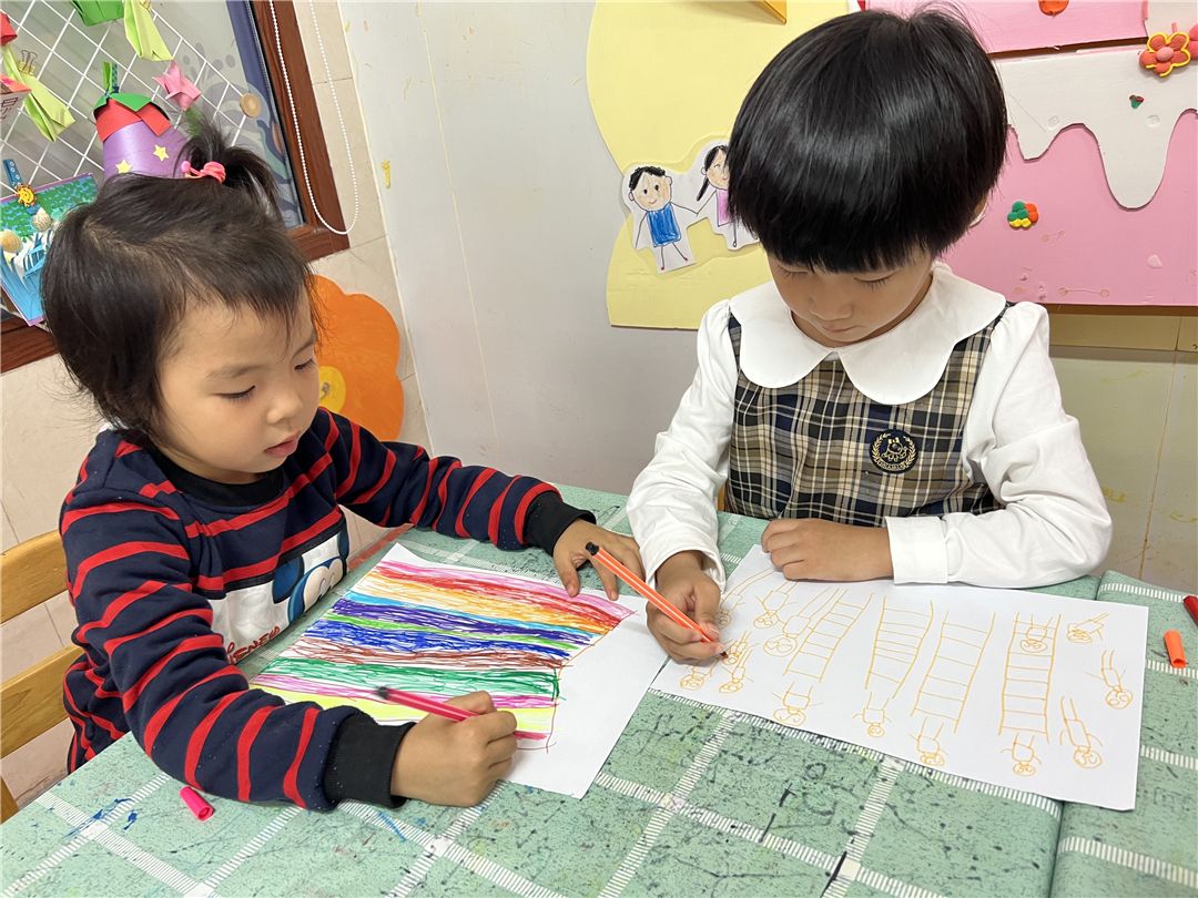 每次去滑草之前小朋友们可兴奋啦。瞧!小朋友们都纷纷设计起各种游戏计划,“先在彩虹滑道边排排队,后有序滑行”“把木板和竹梯接成一条长长的滑道……”,哈哈,我的游戏我设计我做主!