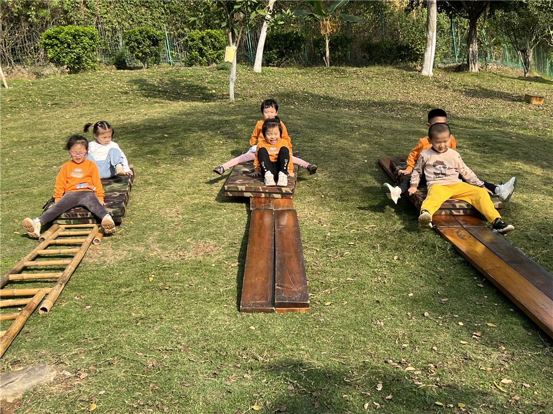 幼儿园独特的小山坡是小朋友们游戏的乐园,里面有多种游戏活动区域及各种丰富的材料,小朋友们可喜欢啦!滑草区是小朋友们超喜欢的游戏区域之一,可好玩啦!