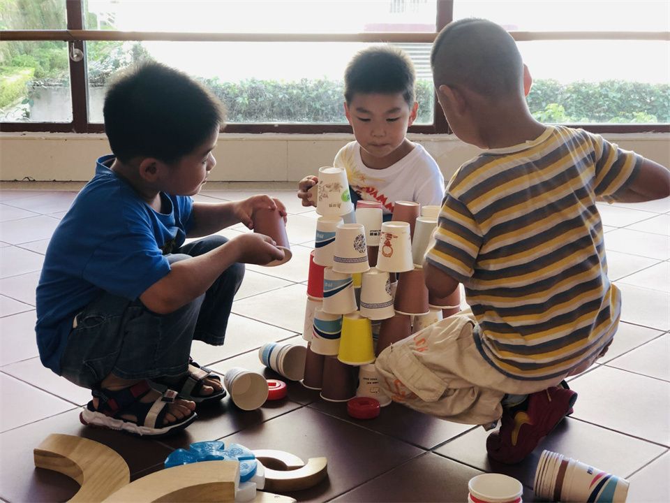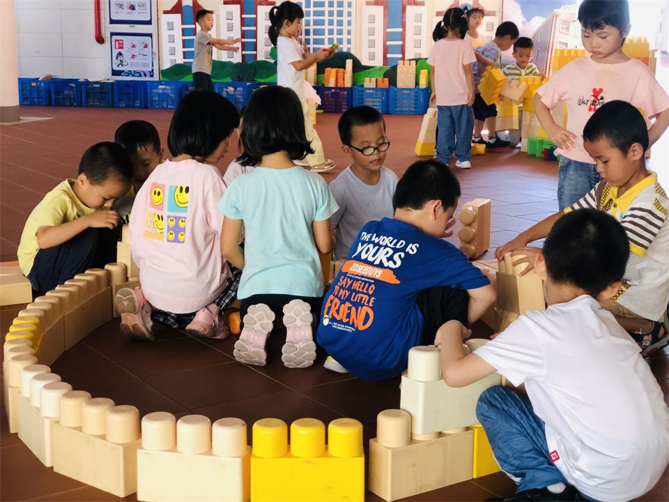 建构游戏热火朝天,福建土楼在伙伴们的合作下拔地而起。