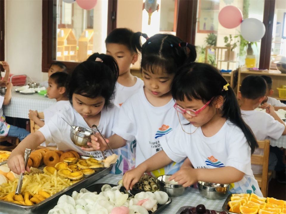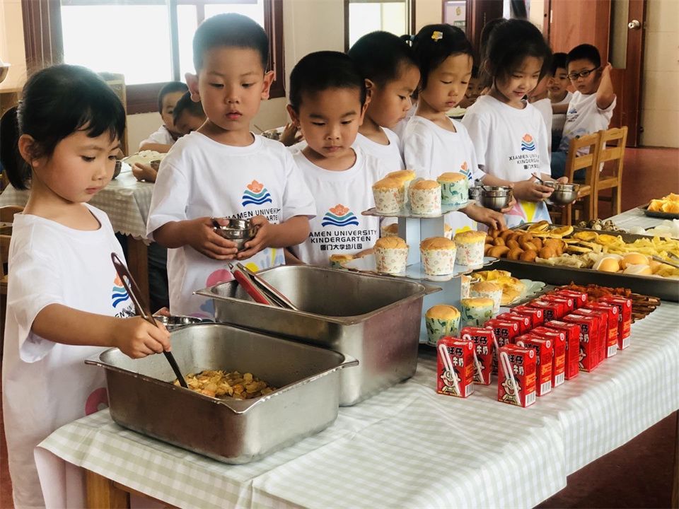 补充体力的时刻到了,只见他们大块朵颐地分享起来,还不时地小声谈论着自助餐的美味,幸福感洋溢在张张稚嫩的小脸上。