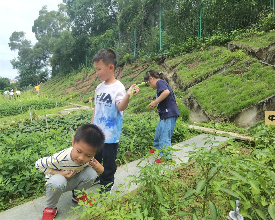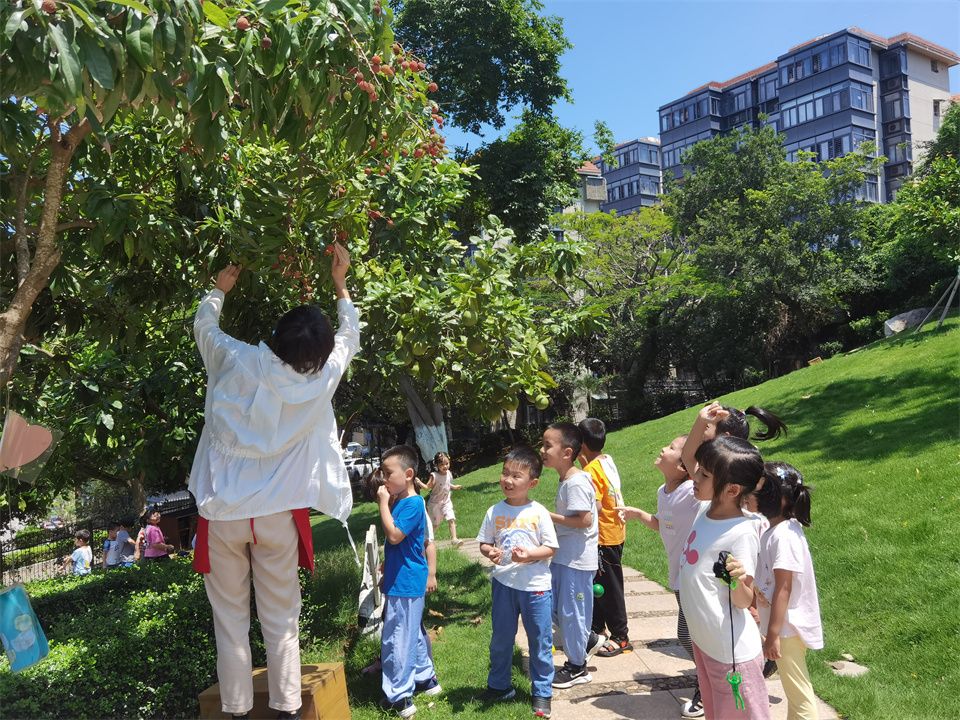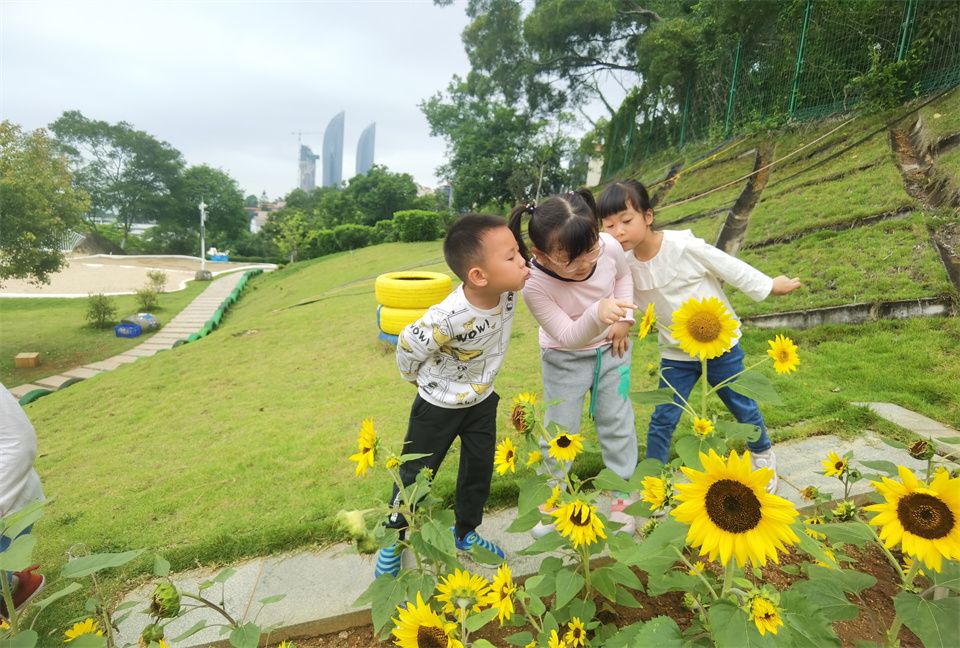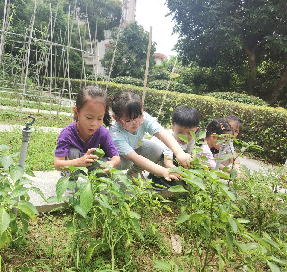 瞧!我们在山坡上采摘成熟的辣椒、欣赏着开得正盛的向日葵、在好好长大的香水柠檬,硕果累累的荔枝树,幼儿园的一切都是那样的美好!