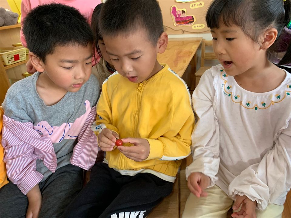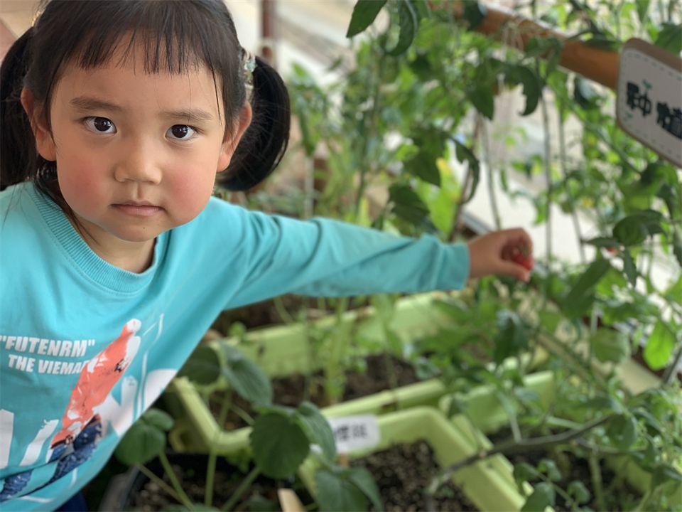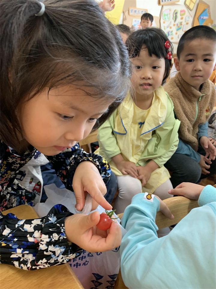 自然角的植物经过了小朋友们的精心照料,小番茄慢慢结出了许多年青色的果子,其中有一颗竟然偷偷红了脸,成熟的小番茄真是诱人,小朋友们一起分享收获的喜悦!