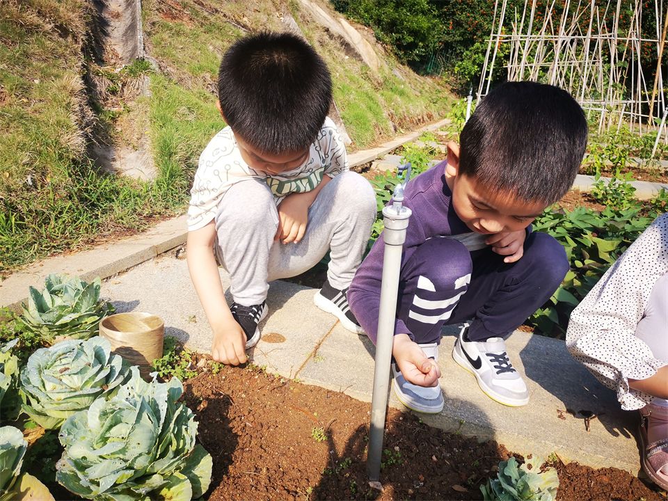 打卡第二站,我们不仅在班级种植了小植物,还在菜园里种了菜苗。我们可是他们的小小守护者!我们会和老师一起去浇水和除草,快来看,是谁在偷偷发了芽?是谁悄悄开了花?