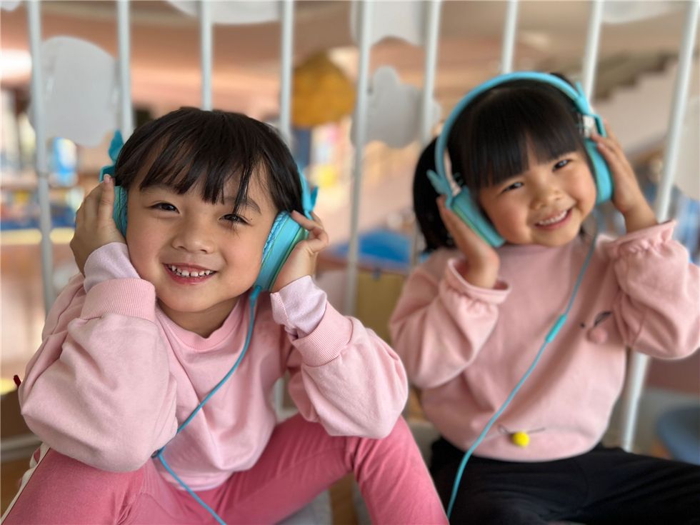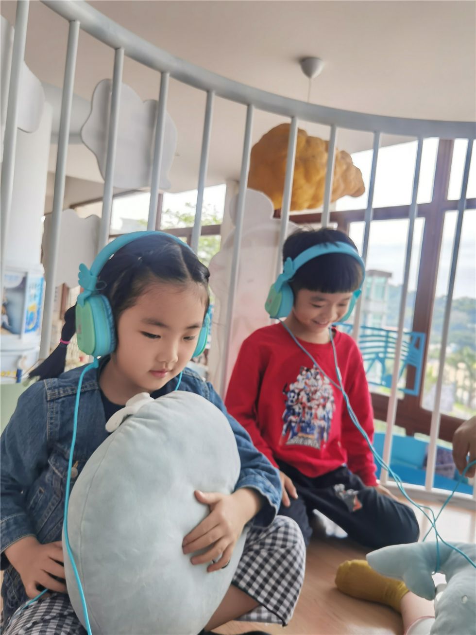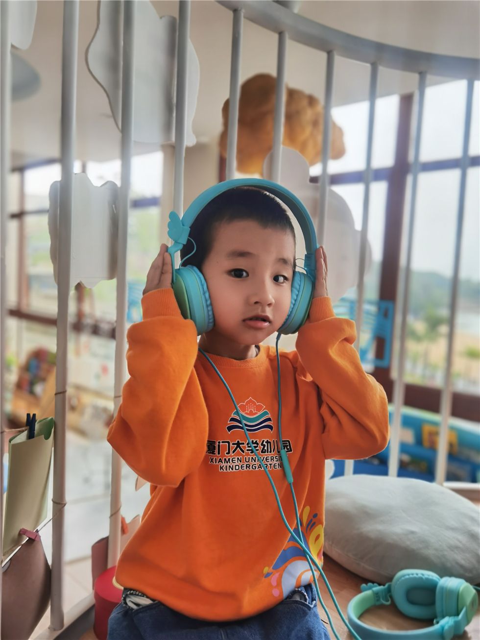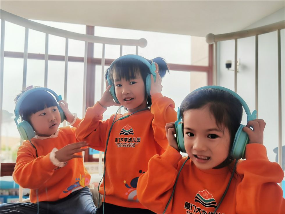 在听海书吧的瞭望台上,宝贝们正戴上耳机沉浸在音乐书籍的海洋世界中,听着有趣的故事和美妙的音乐,带给他们悦耳动听的别样体验,拉近了他们之间友爱的距离!