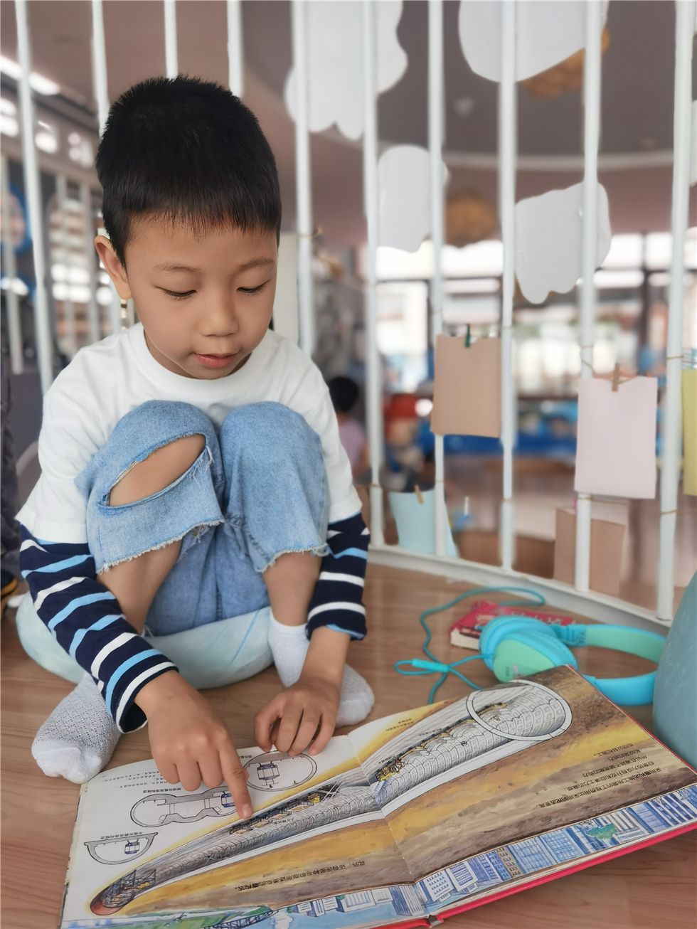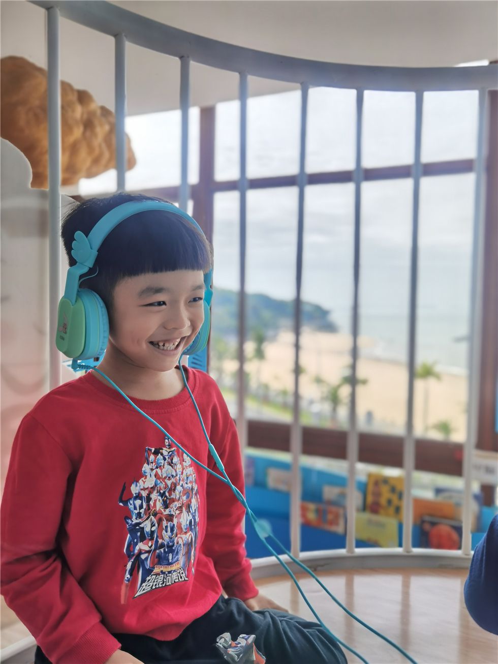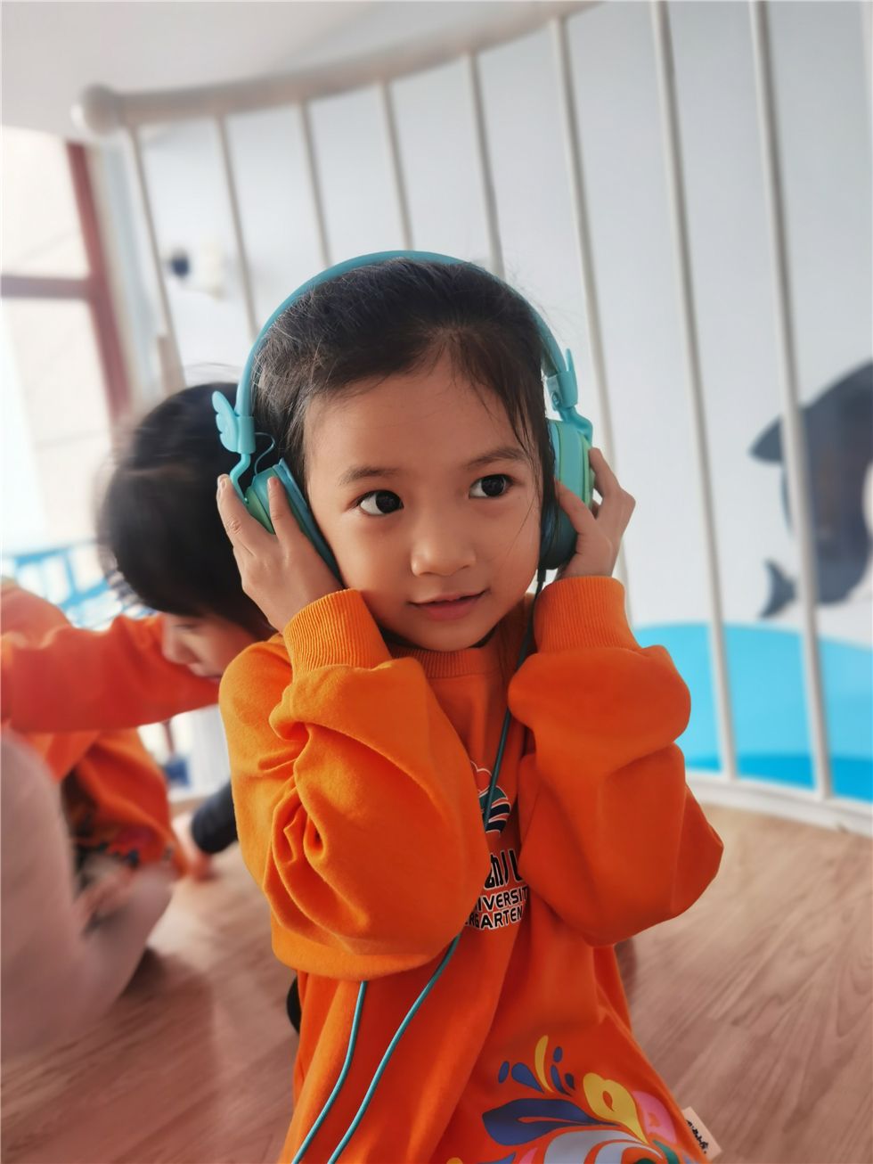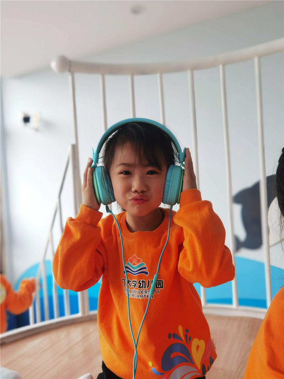 在听海书吧的瞭望台上,宝贝们正戴上耳机沉浸在音乐书籍的海洋世界中,听着有趣的故事和美妙的音乐,带给他们悦耳动听的别样体验,拉近了他们之间友爱的距离!