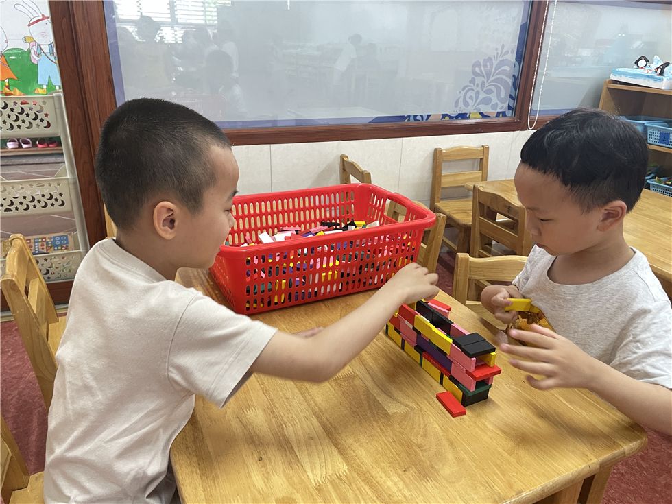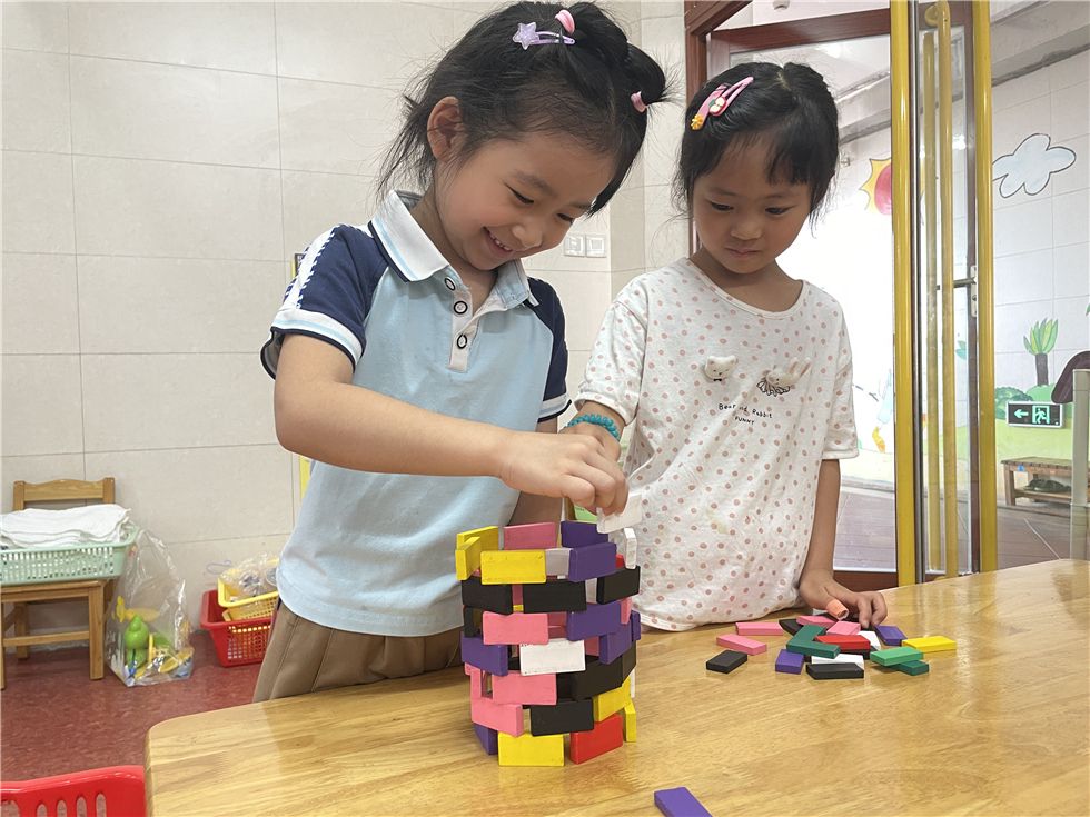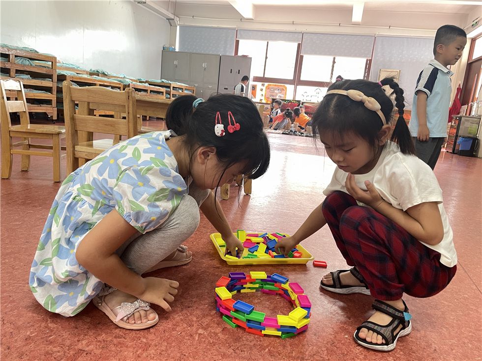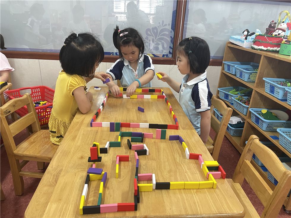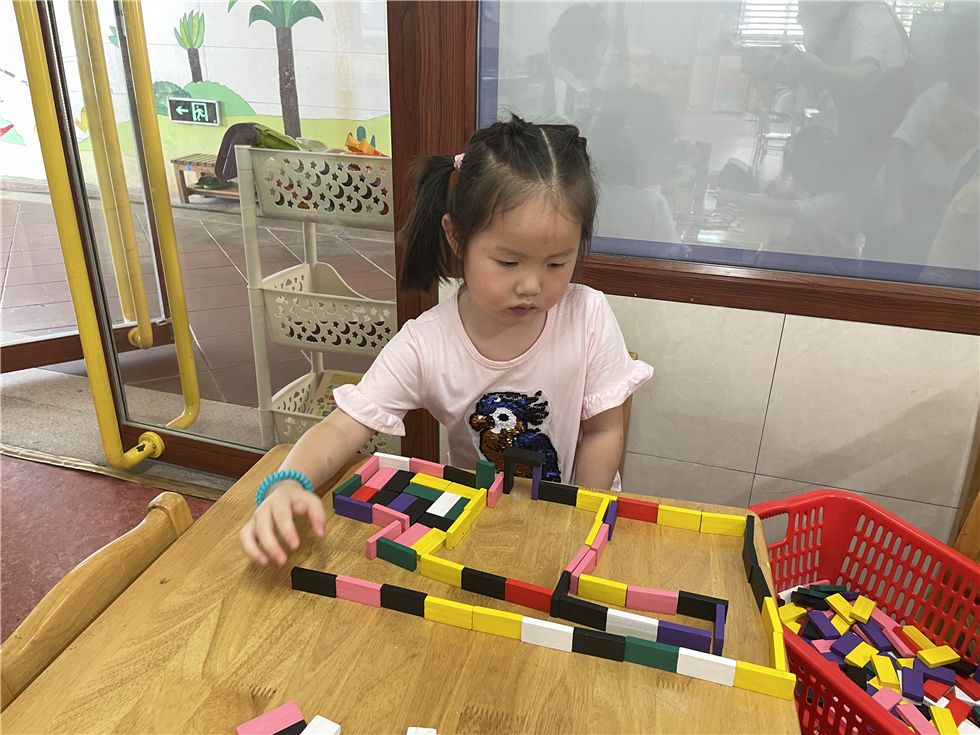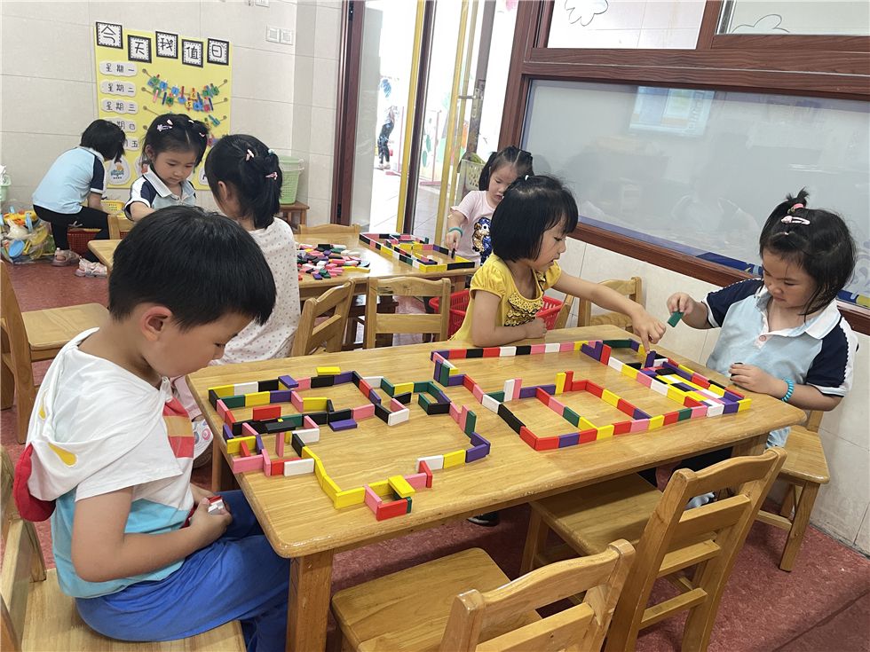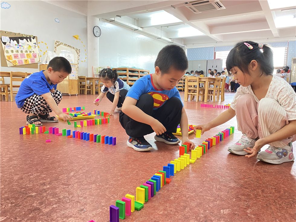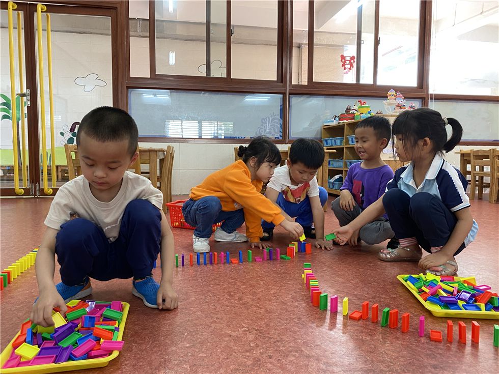 骨牌在孩子们手中不断变化,呈现出各式各样的有趣的造型。