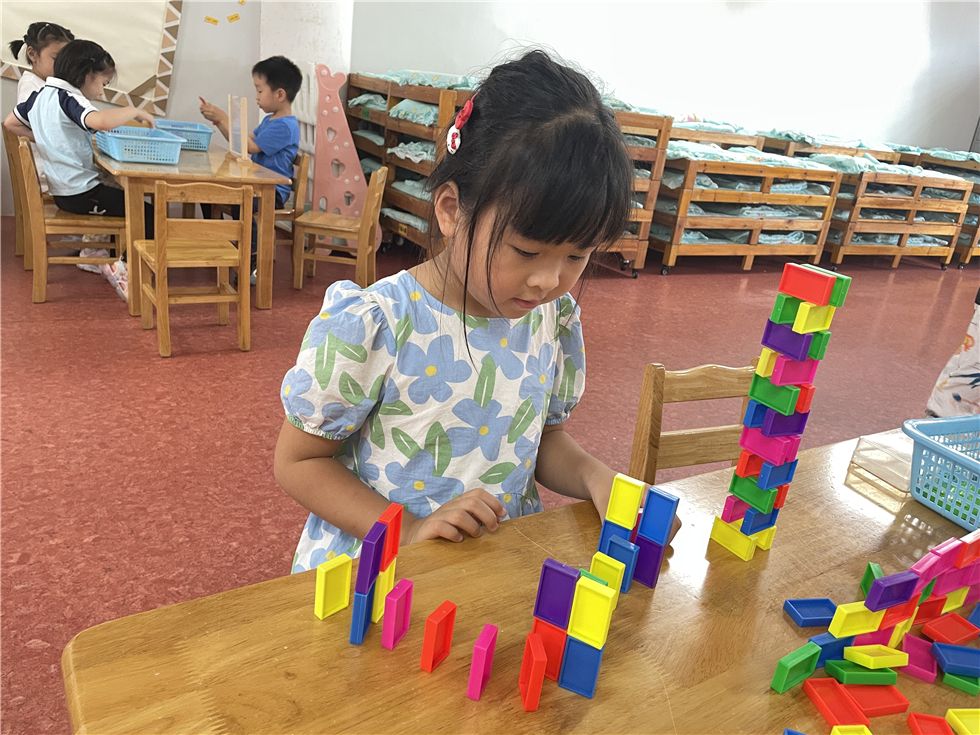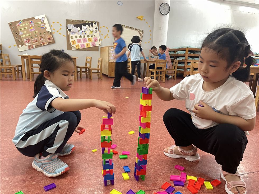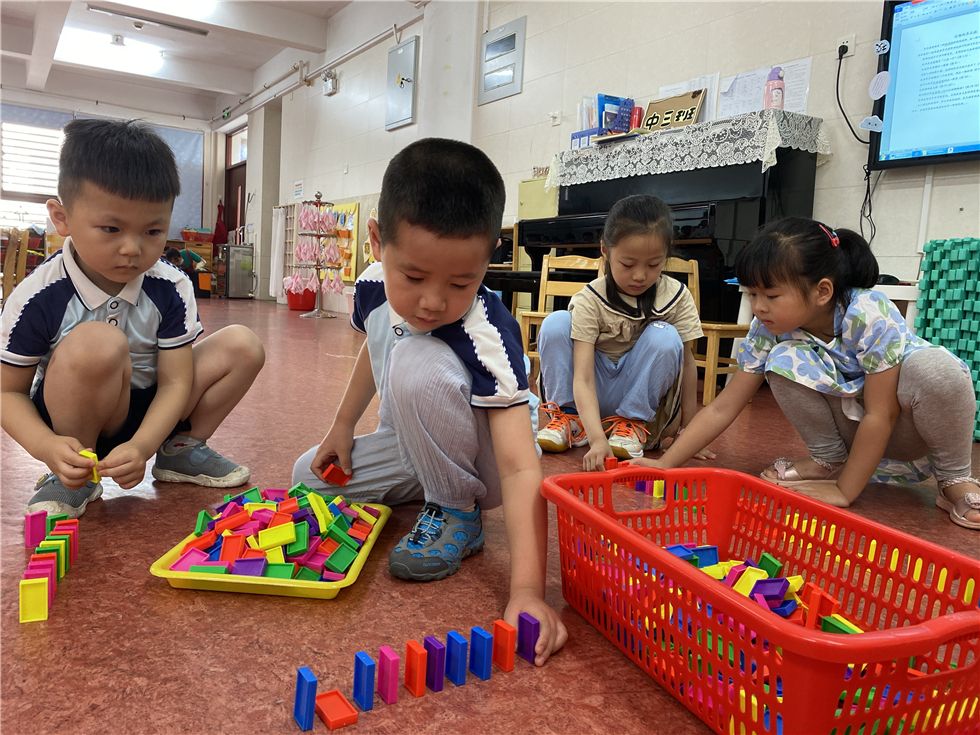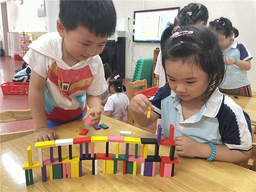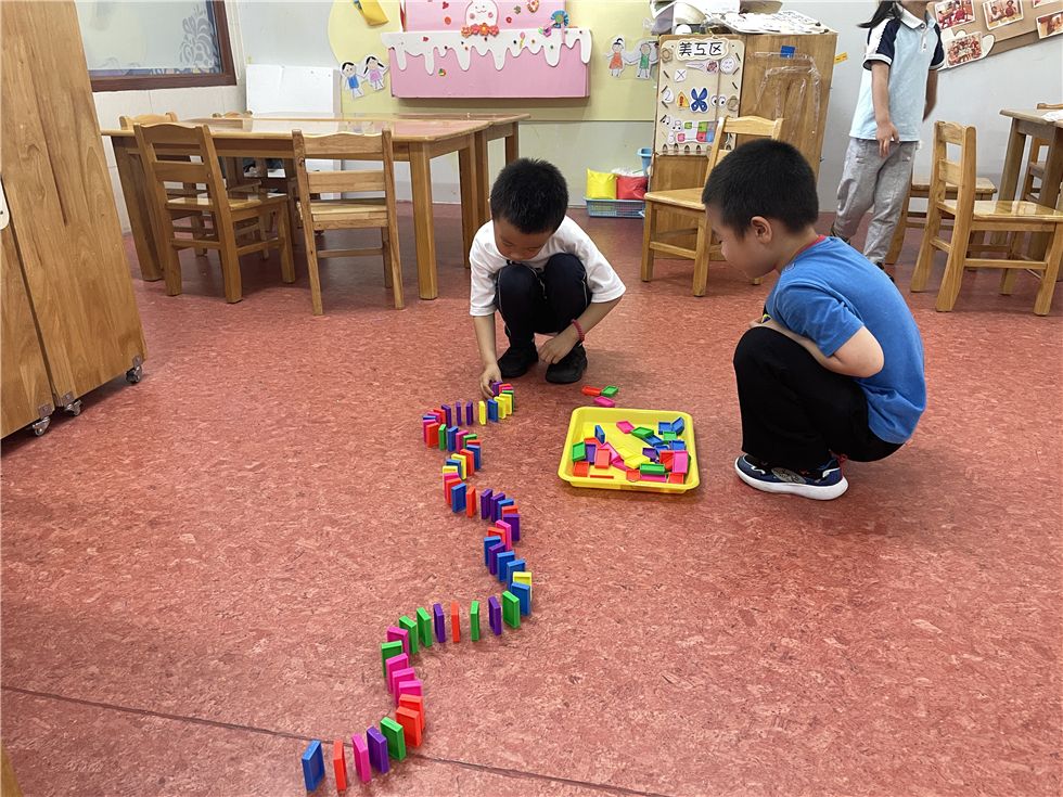 骨牌在孩子们的手中不断变化,呈现出各式各样的有趣的造型。