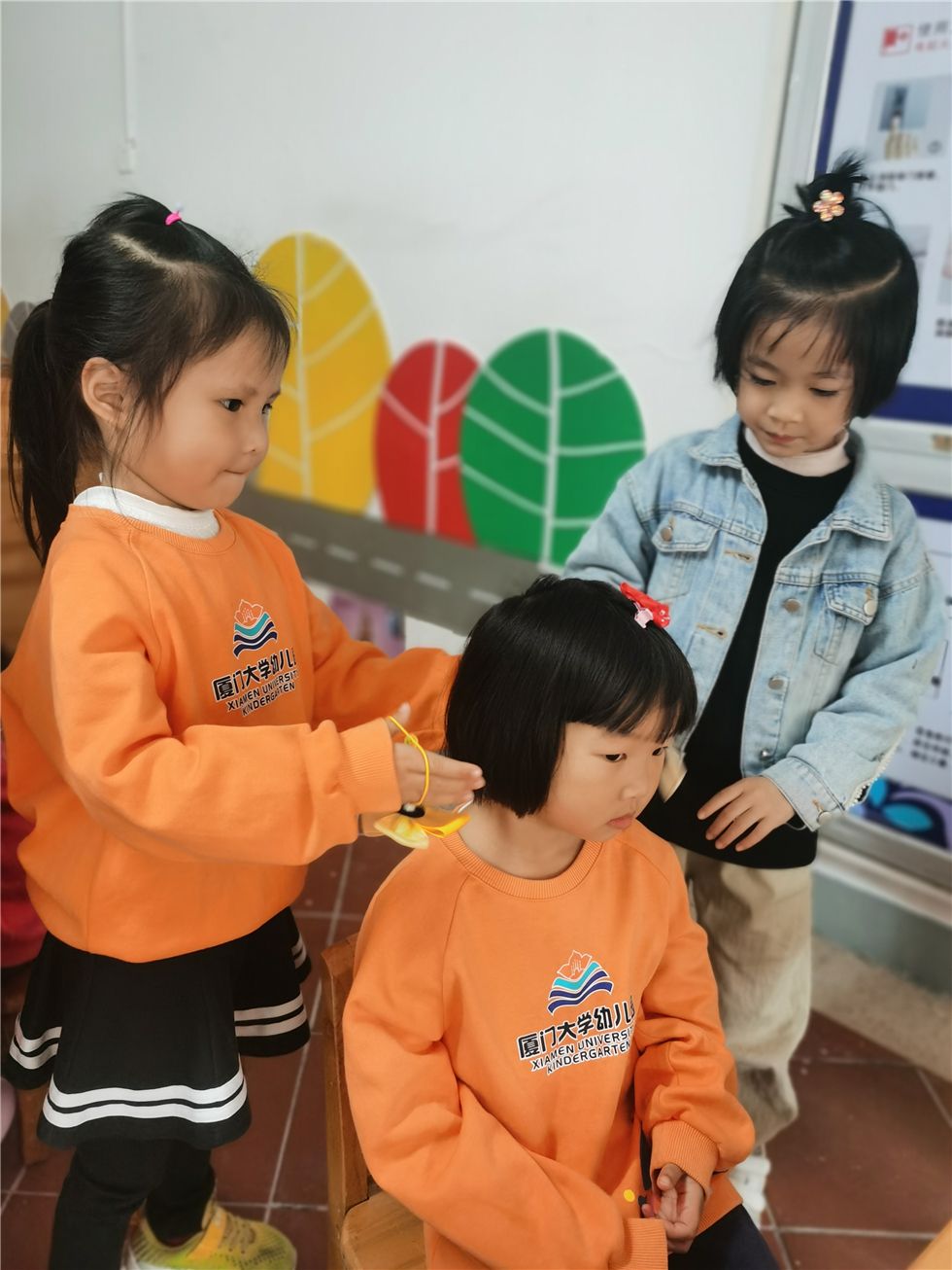 “理发店开业了,快来做头发吧!”“照照镜子,今天我漂亮吗?”