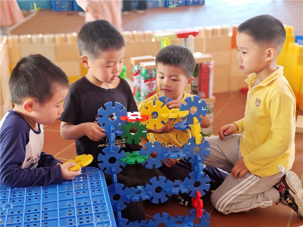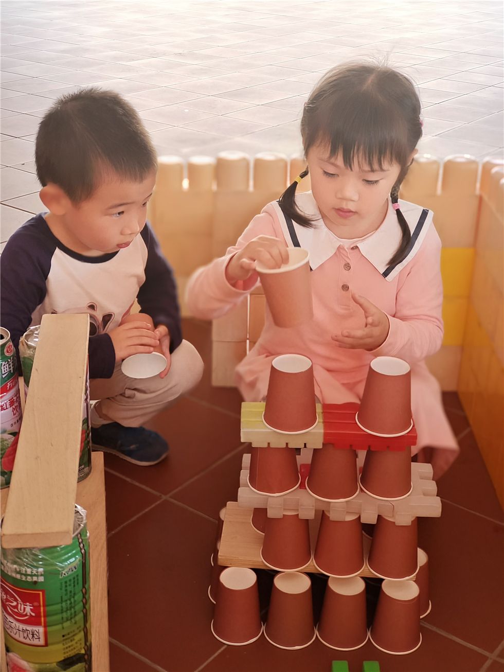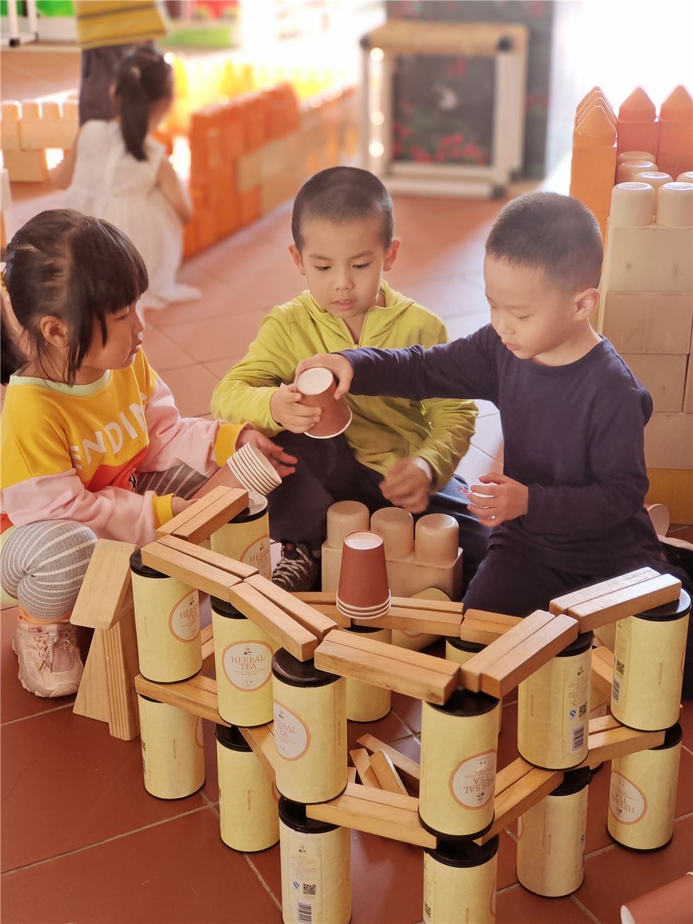 奶粉罐、茶叶罐、纸芯筒,这些生活中的“废旧物”成了孩子们建构游戏中的“宝物”。孩子们通过自主探索、合作搭建等方式探寻自主游戏的快乐,在这里,个个都是真正的小小建筑师!