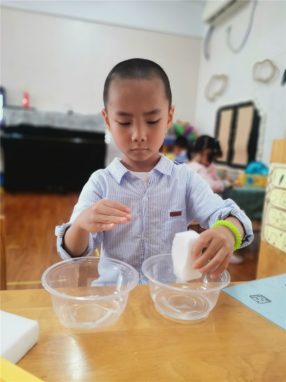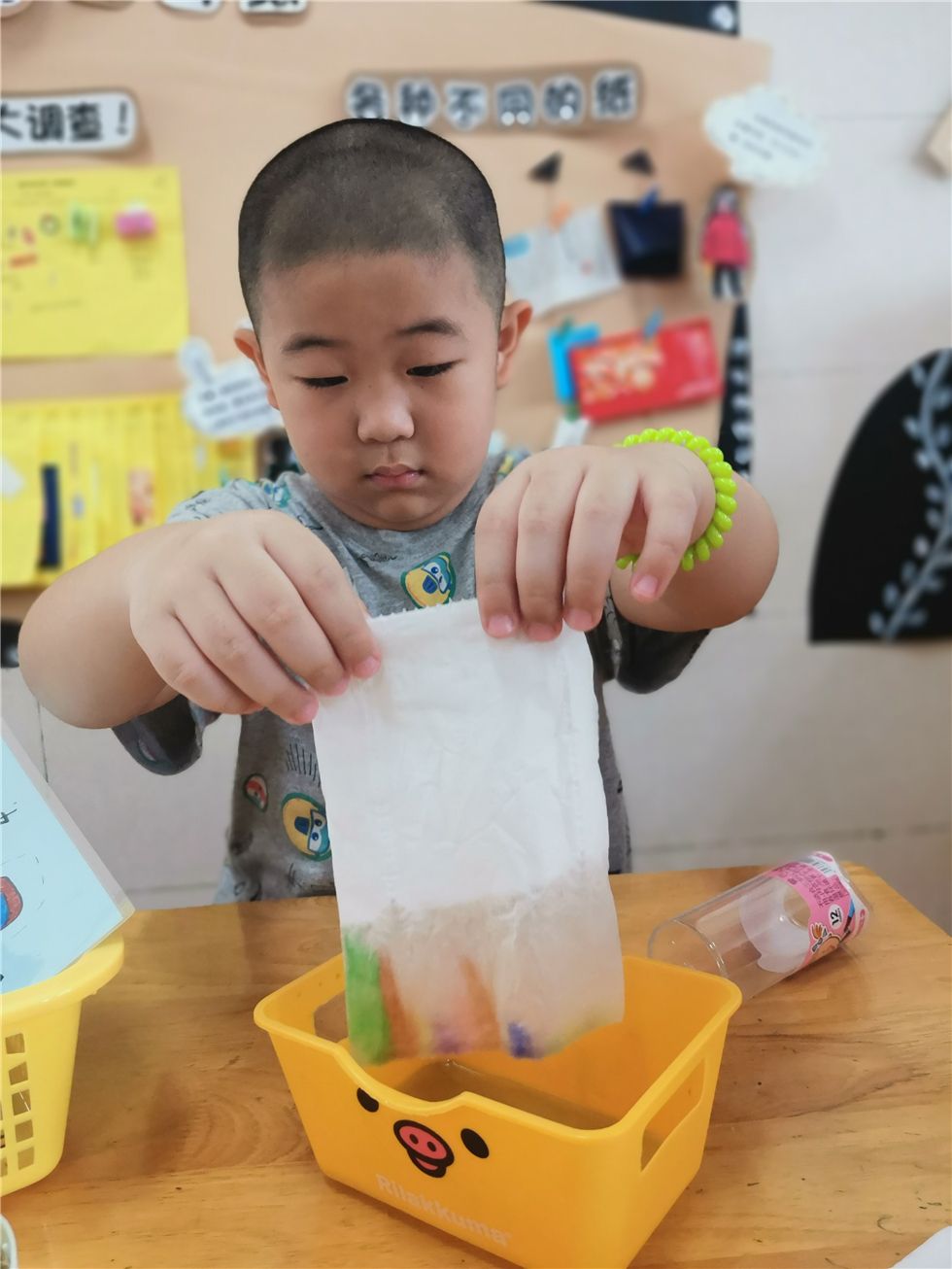 幼儿是天生好动的,他们对周围环境有着强烈的兴趣,他们爱探索、爱发现。在科学区,他们通过一个个小实验,感受科学探究的过程和方法,从而积累生活经验并体验发现的乐趣。