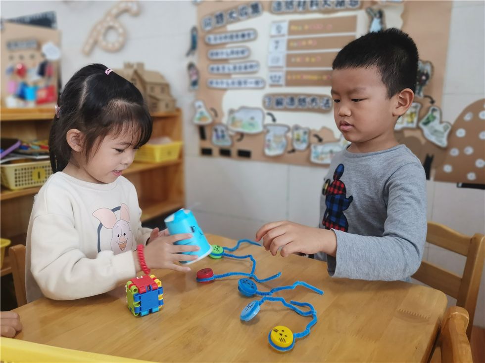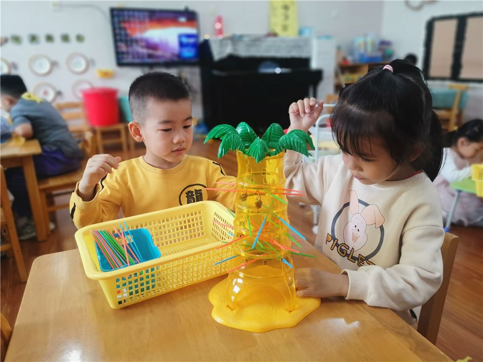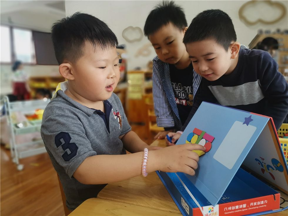 充满魔力的益智区给了幼儿们一把开启智慧之门的金钥匙,他们在其间自行操作、摆弄、摸索、尝试,在不断的发现的过程中不知不觉走进了智慧宫。